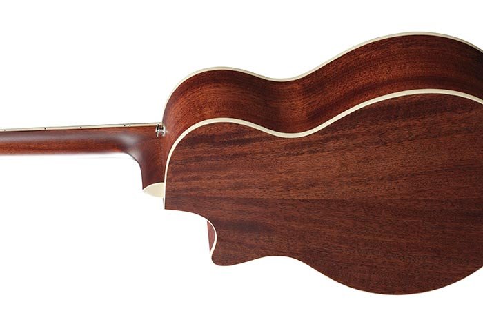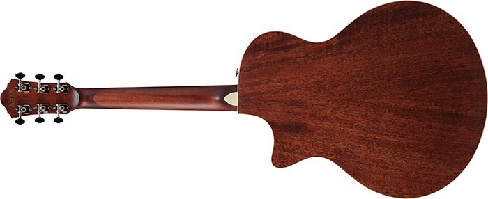 IBANEZ AE200JR-DBF ist eine elektrifizierte Akustikgitarre im Junior-Format, Serie Ibanez AE, mit einer Decke aus massivem Sitka-Fichtenholz, Boden und Zargen aus Okoume, Original Scalloped X-Bracing, satinierter Nyatoh-Hals, Ovangkol-Griffbrett mit 20 Bünden und weißen Punkt-Inlays, Sattel aus 43 mm Knochen, vernickeltes Hardware, Open-Gear-Mechaniken aus Druckguss in Chrom (18:1 Übersetzungsverhältnis) und Ovangkol-Brücke mit einem Sattel aus kompenziertem Knochen. Die Elektronik besteht aus einem Ibanez T-Bar Unter-Sattel-Pickup mit Ibanez Custom Electronics Vorverstärker.