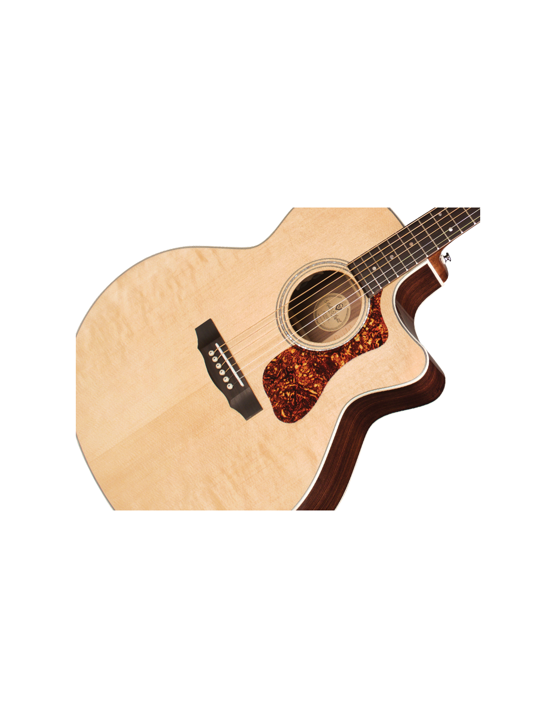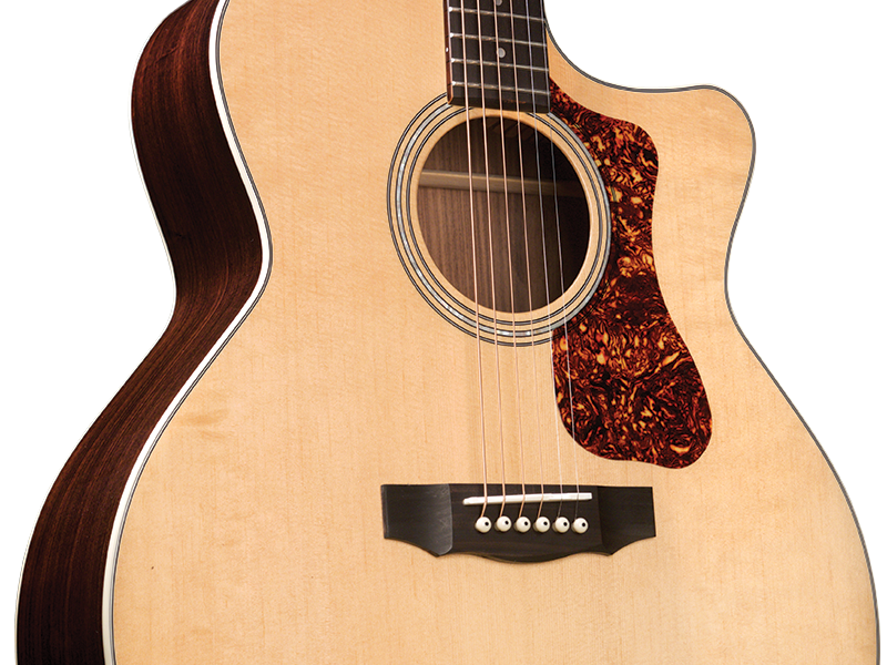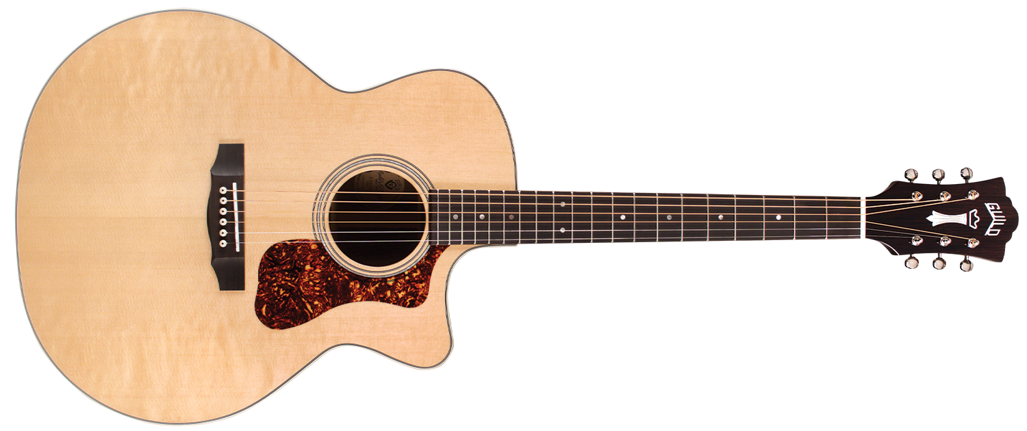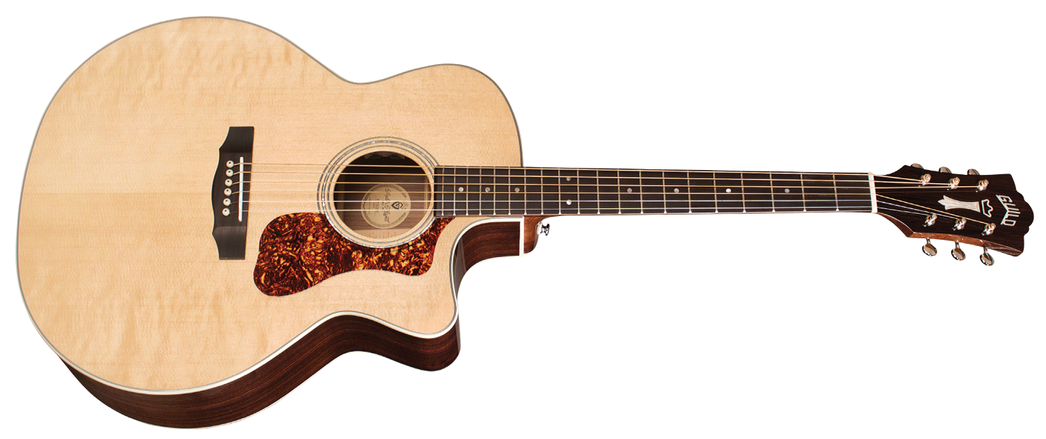 'Mit ihrer charakteristischen Form sind die Jumbo-Akustikgitarren von Guild für ihre Schönheit, ihr Volumen, das ausgewogene Klangbild und die klangliche Vielfalt seit der Einführung des Modells F-50 im Jahr 1954 bekannt. Die F-150CE setzt diese Tradition fort, ihr Deck ist aus massivem Sitka-Fichtenholz, der Boden und die Zargen aus massivem indischem Palisander. Das mitgelieferte Verstärkungssystem ist der Guild/Fishman AP1 Sonitone Pickup. Zusätzliche Merkmale sind das Griffbrett und die Brücke aus indischem Palisander, der Sattel und der Steg aus Knochen, sowie die Rosette aus Perlmutt. Die Breite des Sattels (Nut) beträgt 1 3/4'' (44,5 mm), der Hals der Gitarre ist aus afrikanischem Mahagoni mit einem C-Profil, das klar von Vintage inspiriert ist. Die Gitarre hat eine Mensur von 648 mm, der ikonische Chesterfield-Kopf, das Emblem der Guild der 60er Jahre mit einem Perlmutt-Logo, und der Schlagbrett im Vintage-Stil aus tortoise-celluloid runden die Ausstattung ab. Der neue leichte Guild-Koffer aus Polyfoam ist im Lieferumfang enthalten, um dieses wunderschöne Instrument bestmöglich zu schützen. Die spielerische Polyurethan-Oberfläche (Gloss) ist natürlich.'
