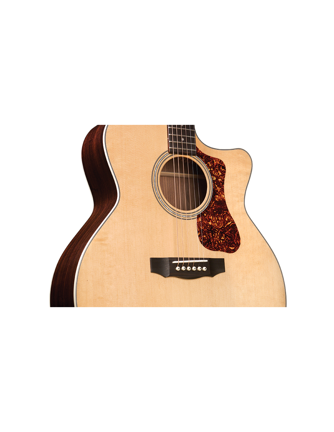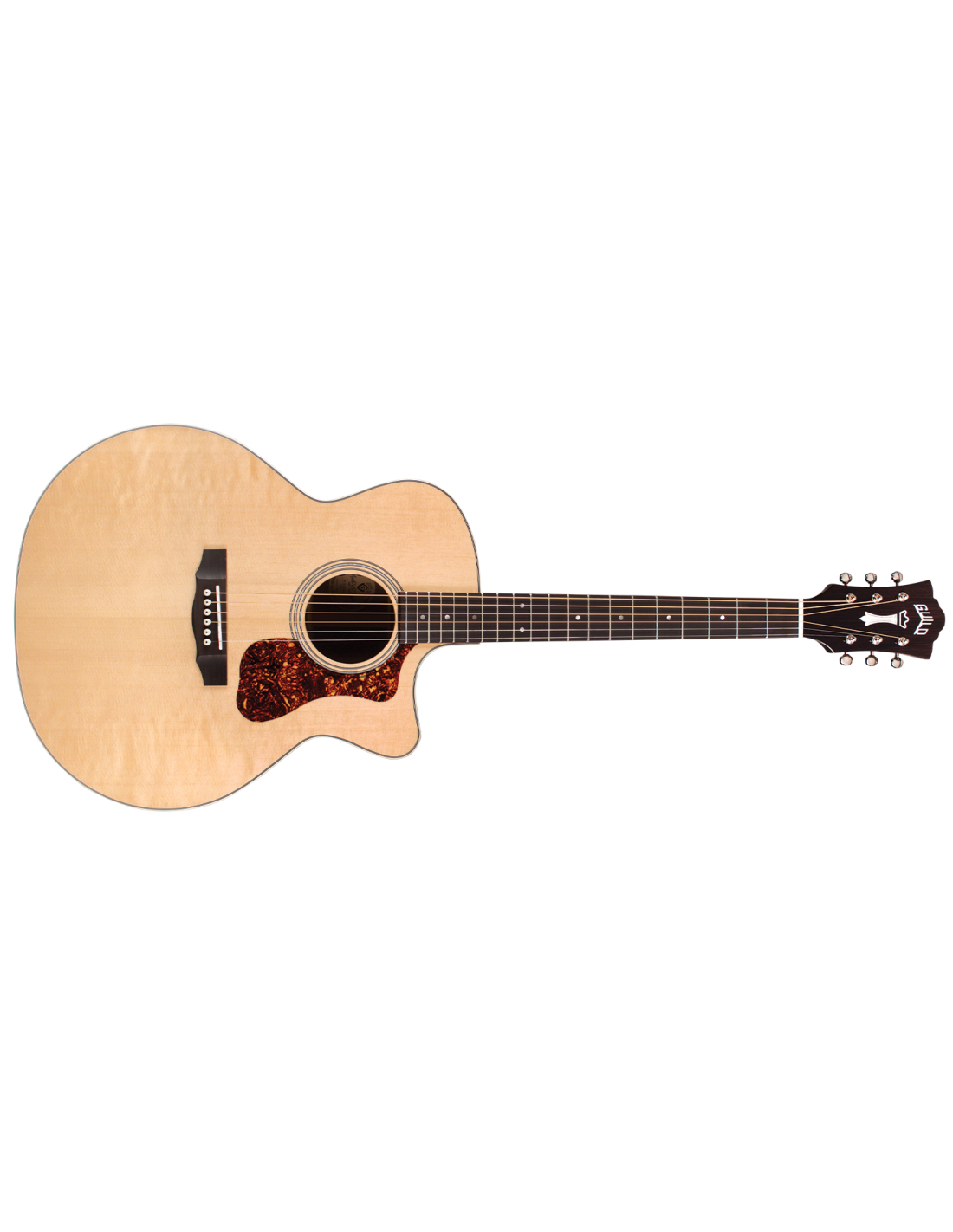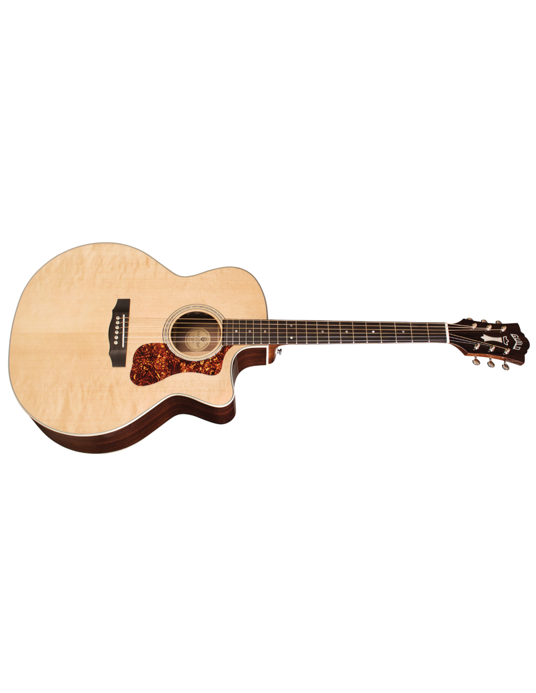 'Mit ihrer charakteristischen Form sind die Jumbo-Akustikgitarren von Guild für ihre Schönheit, ihr Volumen, das ausgewogene Klangbild und die klangliche Vielfalt seit der Einführung des Modells F-50 im Jahr 1954 bekannt. Die F-150CE setzt diese Tradition fort, ihr Deck ist aus massivem Sitka-Fichtenholz, der Boden und die Zargen aus massivem indischem Palisander. Das mitgelieferte Verstärkungssystem ist der Guild/Fishman AP1 Sonitone Pickup. Zusätzliche Merkmale sind das Griffbrett und die Brücke aus indischem Palisander, der Sattel und der Steg aus Knochen, sowie die Rosette aus Perlmutt. Die Breite des Sattels (Nut) beträgt 1 3/4'' (44,5 mm), der Hals der Gitarre ist aus afrikanischem Mahagoni mit einem C-Profil, das klar von Vintage inspiriert ist. Die Gitarre hat eine Mensur von 648 mm, der ikonische Chesterfield-Kopf, das Emblem der Guild der 60er Jahre mit einem Perlmutt-Logo, und der Schlagbrett im Vintage-Stil aus tortoise-celluloid runden die Ausstattung ab. Der neue leichte Guild-Koffer aus Polyfoam ist im Lieferumfang enthalten, um dieses wunderschöne Instrument bestmöglich zu schützen. Die spielerische Polyurethan-Oberfläche (Gloss) ist natürlich.'