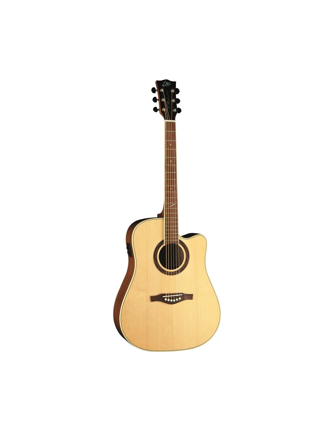 Akustikgitarre Eko One D CW EQ Farbe NATURAL. Die Eko One D CW EQ ist eine elektrifizierte Akustikgitarre mit 6 Saiten. Die technischen Merkmale umfassen einen Boden und Zargen aus Mahagoni, eine Decke aus Fichte, einen Hals aus Mahagoni, ein Griffbrett aus südamerikanischem Roupanà, eine fehlende Schulter und die Eko-Verstärkung von Fishman Presys II.