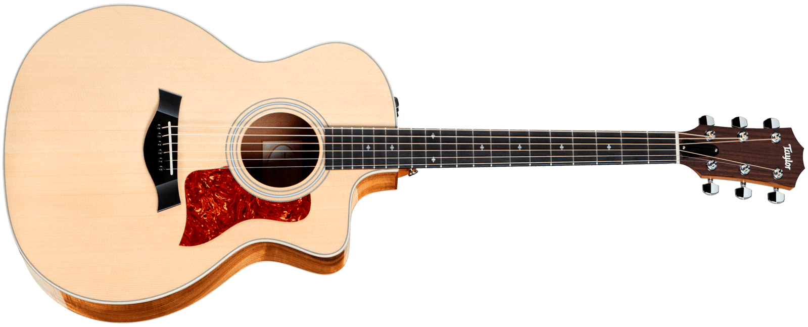 Akustikgitarre Taylor 214ce-K Koa/Fichte in der Farbe NATURAL. Die Taylor 214ce-K Koa/Fichte ist eine akustische Gitarre mit 6 Saiten im Grand Auditorium Format. Zu den Eigenschaften gehören ein Korpus und Zargen aus laminiertem Koa, eine massive Sitka-Fichtendecke, ein Hals aus Sapele, ein Griffbrett aus Ebenholz, 20 Bünde, ein Ebenholzgriffbrett und die Elektronik Expression System 2.