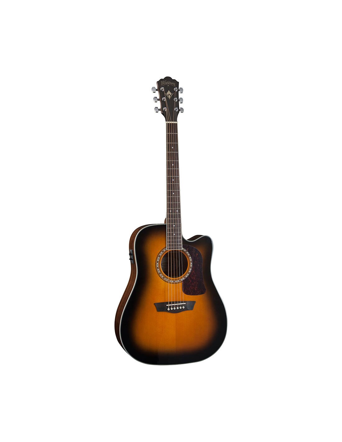 Akustische E-Gitarre Dreadnought Cutaway, Decke aus massivem Sitka-Fichtenholz, Boden und Zargen aus Mahagoni, Fishman Presys II301T Vorverstärker, Farbe Tobacco Burst Die HD10 SCE ist eine akustische E-Gitarre im Dreadnought-Cutaway-Design. Die Gitarre verfügt über eine Decke aus massivem Sitka-Fichtenholz mit "cathedral peaked scalloped-X" Verstärkung, Boden, Zargen und Hals aus Mahagoni, ein Griffbrett und eine Brücke aus Ovangkol, verchromte Gussmechaniken, einen tortoise-farbenen Schlagbrett von Washburn und eine Rosette mit Washburn Heritage Design. Die Gitarre ist mit einem Fishman Presys II 301T Vorverstärker mit integriertem Tuner ausgestattet. Dieser Vorverstärker bietet einen sehr natürlichen verstärkten Klang und verfügt über Lautstärke-, Bass-, Höhenregler und einen Phasenschalter zur Feedbackkontrolle. SPEZIFIKATIONENForm: Dreadnought CutawayDecke: Massives Sitka-FichtenholzBoden/Zargen: MahagoniHals: Satiniertes Mahagoni Truss Rod 2 WegeGriffbrett: OvangkolRosette: Washburn HeritageEinlagen: PunkteVerstärkung: Cathedral peaked Scalloped-XBrücke: OvangkolSattel: Graphtec NuboneMechaniken: Verchromte GussmechanikenVorverstärker: Fishman Presys II301TAnzahl der Bünde: 20 BündeMensur: 25 5/16 Farbe: Tobacco BurstOberfläche: GlänzendSaiten: D’Addario