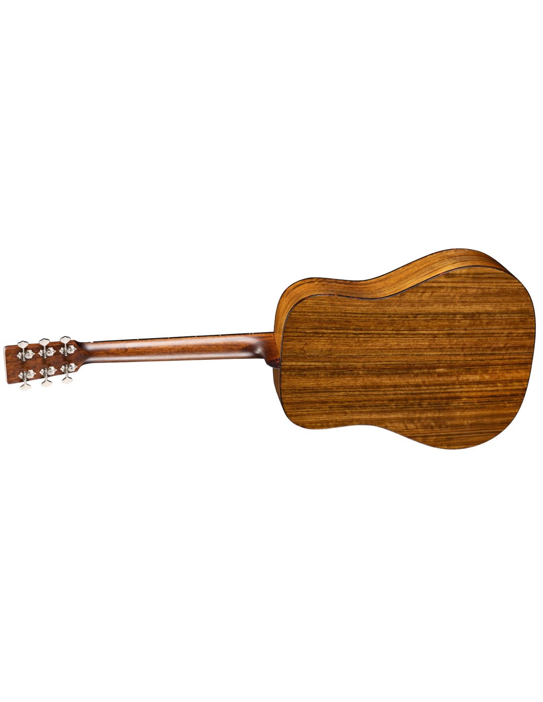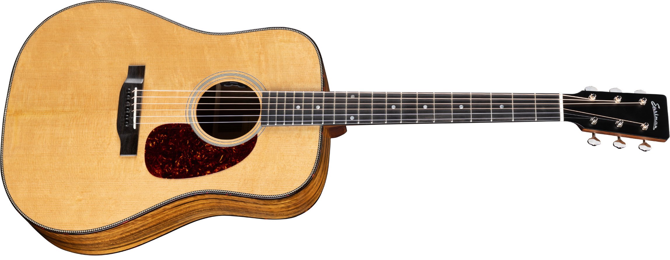 EASTMAN E3DE D ist eine elektrifizierte Akustikgitarre der Serie E3DE mit Dreadnought-Korpus, Boden und Zargen aus massivem Ovangkol, Decke aus massivem Sitka-Fichtenholz, Hals aus Mahagoni im Traditional Even C-Profil, Griffbrett aus Ebenholz mit 12"-Radius und 20 Jescar-FW43080-Bünden sowie Perlmutteinlagen am Kopfstück, Sattel aus Knochen, vernickeltes Hardware, Open-Gear PingWell V93N 3+3 Mechaniken und ein Ebenholzbrücke mit Knochen-Sattel. Die Elektronik besteht aus einem Fishman Sonitone Verstärkungssystem, das aus einem piezoelektrischen System mit Lautstärke- und Toneinstellungen besteht. Inklusive Eastman Deluxe gepolsterter Gigbag.