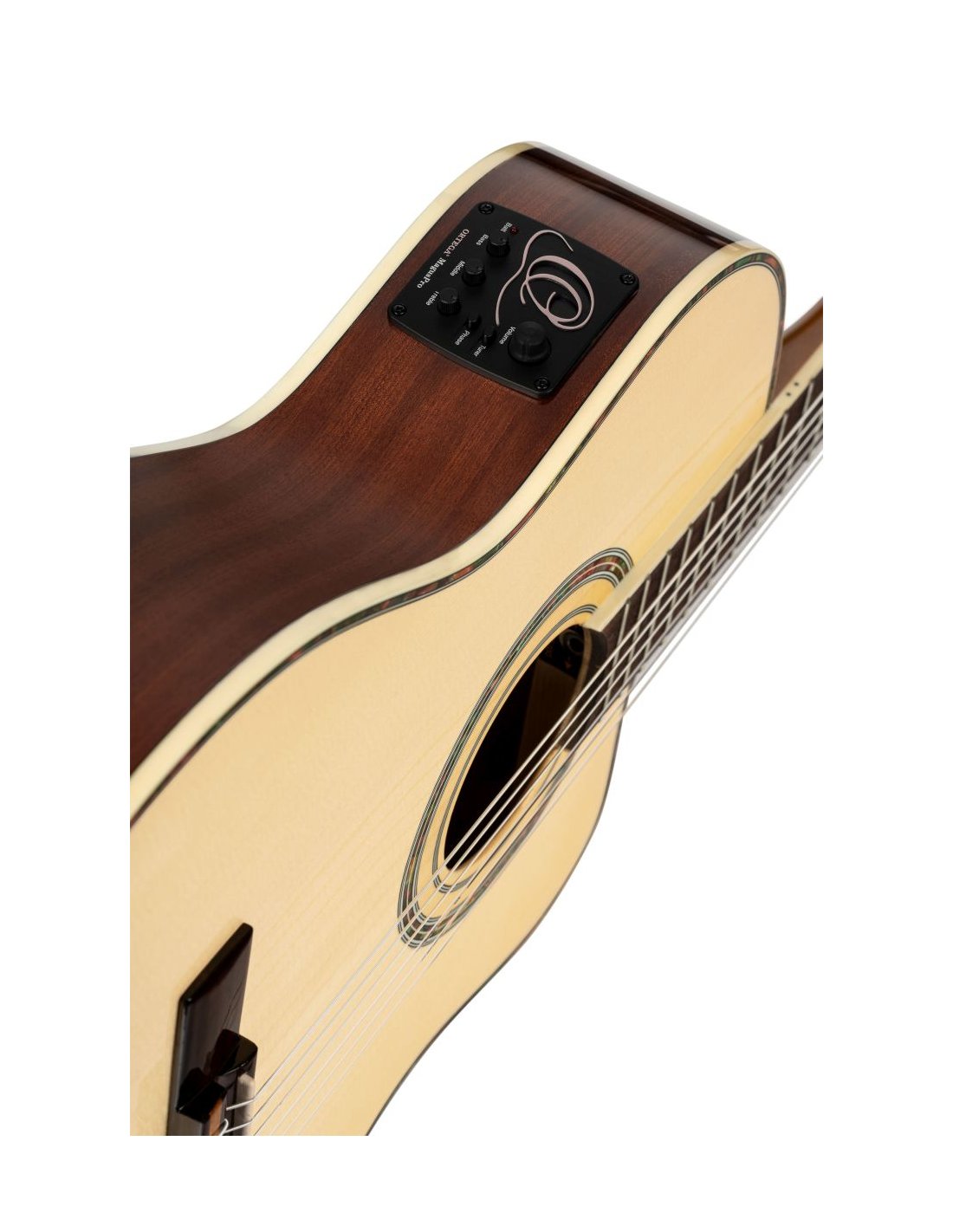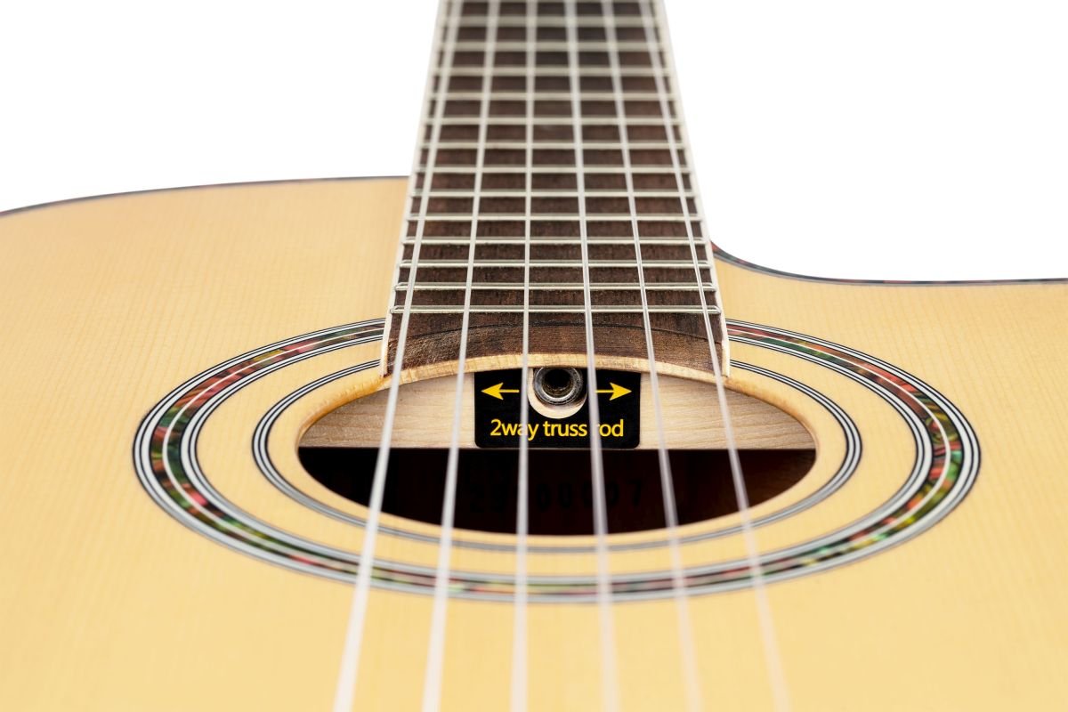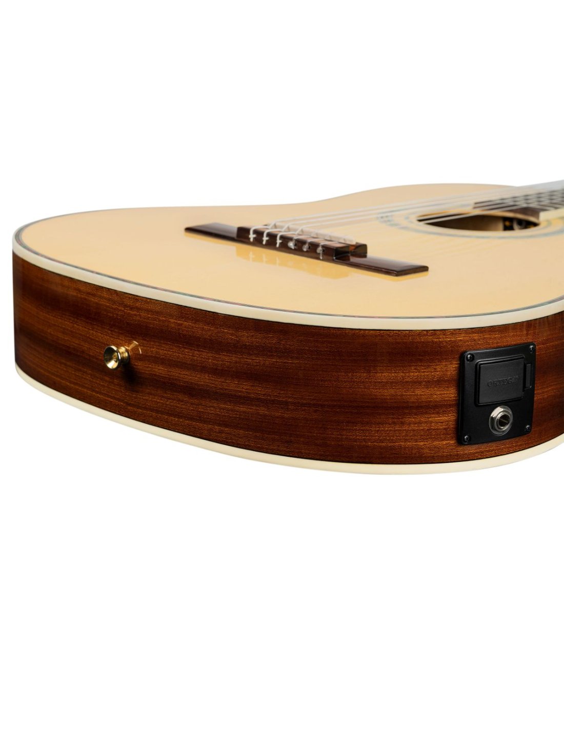 'Die Family Pro-Serie vereint alle wertvollen Eigenschaften der meistverkauften Family-Serie und fügt eine robuste Decke für Musiker hinzu, die eine umfassendere Klangantwort wünschen. Diese Serie führt auch unsere schlanken akustischen/elektroakustischen Modelle mit einer Vielzahl von Finish-Optionen ein.6-saitige Gitarre 4/4Decke aus kanadischem Engelmann-Fichtenmassiv, hochglänzende OberflächeBoden und Zargen aus Mahagoni, hochglänzende OberflächeThinline-KorpusSchlanker Hals aus Nato, hochglänzende OberflächeGriffbrett und Steg aus WalnussOrtega MagusPro Elektronik mit StimmgerätOrtega 12-Loch Steg2-Wege Truss RodInklusive Deluxe-WeichschaleMensur: 650mm / 25,59''Bünde: 19Breite am Sattel: 52mm / 2,05''Ortega2023'