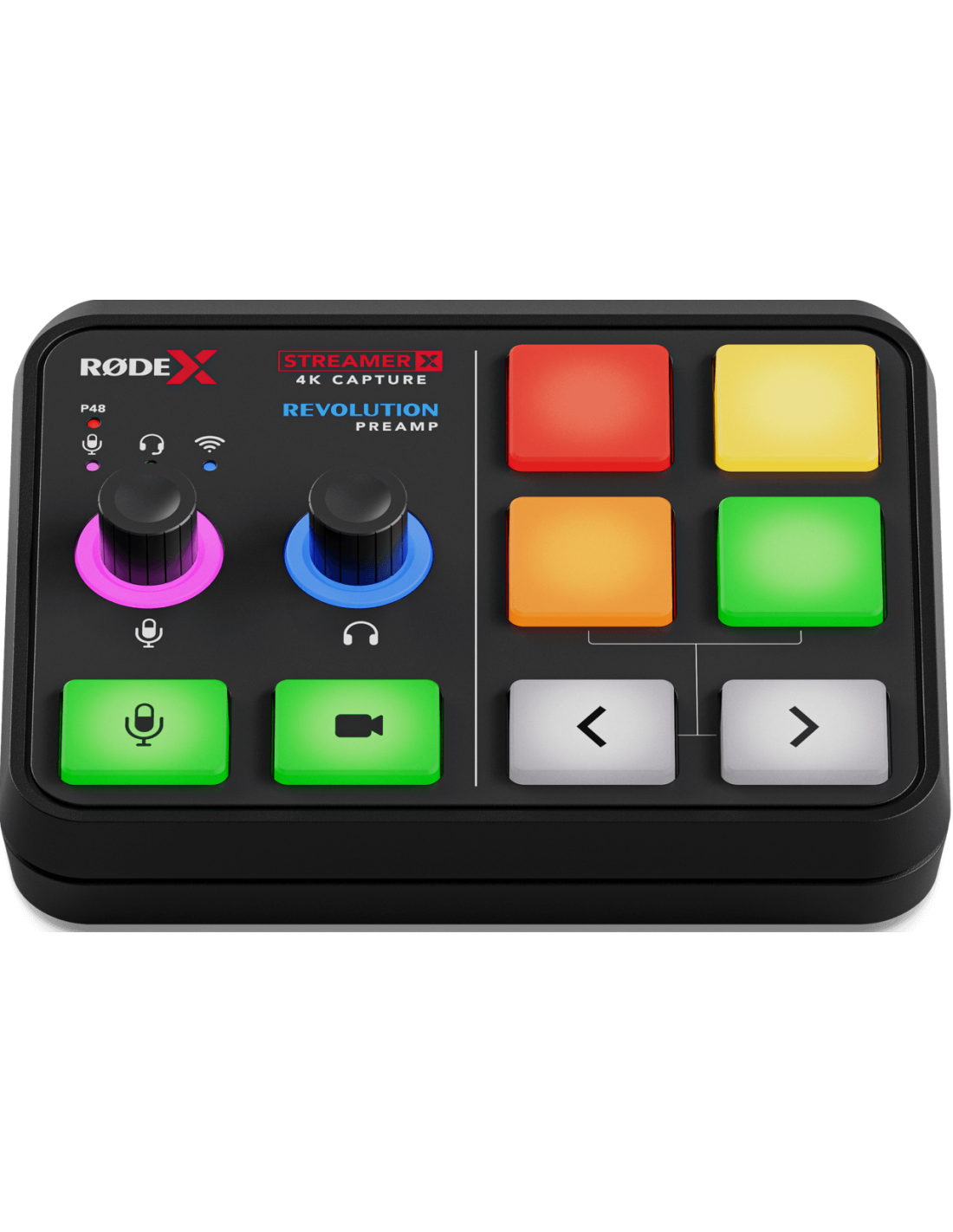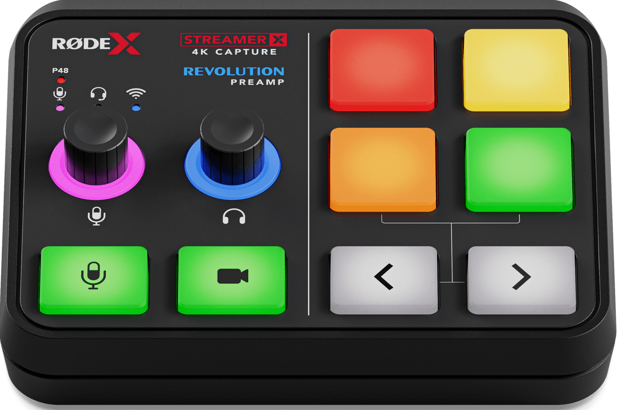 Die Streamer X ist eine Videoaufnahmekarte, Audio-Schnittstelle und Steueroberfläche von Rode. Sie verfügt über Eingänge für Mikrofone und XLR-Instrumente, Kopfhörer und drahtlose RØDE-Mikrofone, einen geräuscharmen und hochverstärkenden Revolution Preamp, 4 SMART-Pads, doppelte USB-C-Anschlüsse und HDMI-Anschlüsse, die Streaming bis zu 4K30/2K60 und Durchleitung 2K120/4K60 bieten.