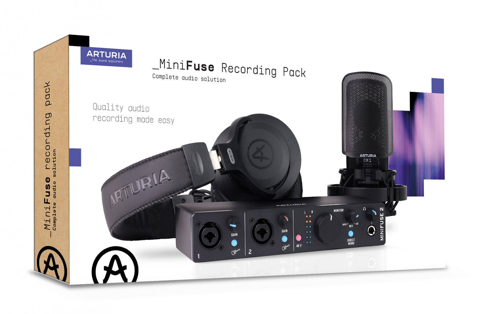 Bundle mit MiniFuse 2, Mikrofon, Kopfhörer und Kabeln. Die schwarze Version des MiniFuse Recording Packs ist das neue, vollständige Bundle von Arturia, ideal für Musiker, Produzenten und "Sound-Explorer", die in einer einzigen Lösung alles Notwendige für die "Entry-Level"-Musikproduktion haben möchten, mit der Möglichkeit, zu Hause kompromisslos zu kreieren und aufzunehmen. Das MiniFuse Recording Pack umfasst in einem einzigen Paket ein Audio-Interface, ein Mikrofon, einen Kopfhörer und alle notwendigen Kabel, um die Produktion und das Home Recording einfach und sofort zu starten. Es ist die perfekte Wahl für Anfänger, die zum ersten Mal in die Musikproduktion oder in den immer größer werdenden Bereich der Inhaltserstellung einsteigen, aber auch für Produzenten und Musiker auf einem fortgeschritteneren Niveau, die nach einer 'Low-Budget'- oder 'Spare'-Lösung mit Platzbeschränkungen in ihrem Arbeitsumfeld suchen. Arturia MiniFuse 2, die im MiniFuse Recording Pack enthalten ist, bietet MIDI-Anschlüsse sowie zwei Eingänge und zwei Ausgänge für Audio und ist perfekt zum Aufnehmen von Gesang, Gitarre, Podcasts und zur Produktion von Tracks in höchster Qualität, einschließlich eines sehr umfangreichen und vollständigen Softwarepakets. Vom sofort einsatzbereiten Musikproduktionssoftware über Hunderte von außergewöhnlichen Synth-Presets bis hin zu hochwertigen Studioeffekten von Arturia ermöglicht das enthaltene Softwarepaket, die Aufnahmen auf ein höheres Niveau zu heben und einen einzigartigen Klang zu bieten, der für jeden Musikstil geeignet ist. Mit der enthaltenen Software kann man der eigenen Kreativität volle Priorität einräumen, dank Tutorials zur Musikproduktion, Mixing-Tipps und Ableton-Projektvorlagen, die von Künstlern, Produzenten und Beatmakern erstellt wurden. Die kostenlose Software wird ständig aktualisiert und erfordert kein zusätzliches Abonnement. Das MiniFuse Recording Pack umfasst: MiniFuse 2: ein Audio/MIDI-Interface mit 2 Eingängen und 2 Ausgängen, ein CM1-Kondensatormikrofon mit Stoßdämpfer und Popfilter, geschlossene EF1-Kopfhörer mit Adapter, ein 3 m XLR-Kabel, 6 Premium-Softwarepakete für die Musikproduktion. Das MiniFuse Recording Pack ist in den Farben 'schwarz' oder 'weiß' erhältlich.