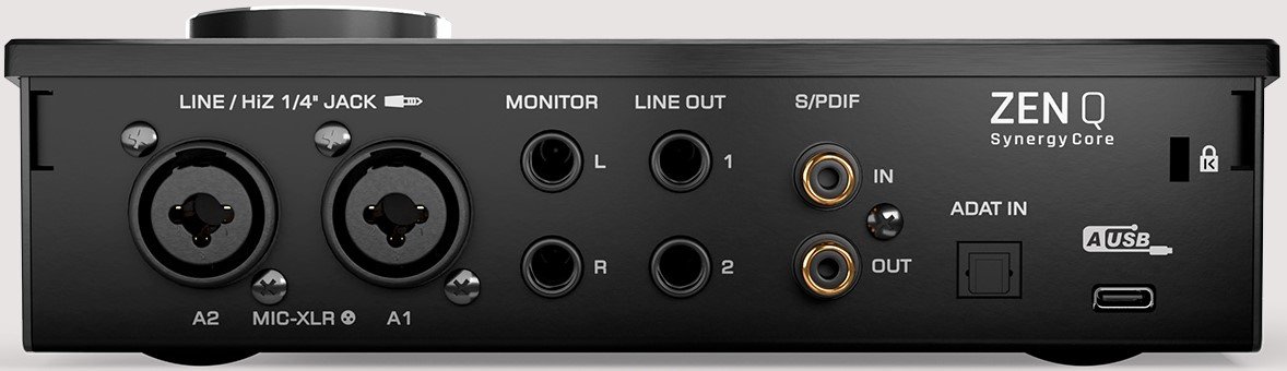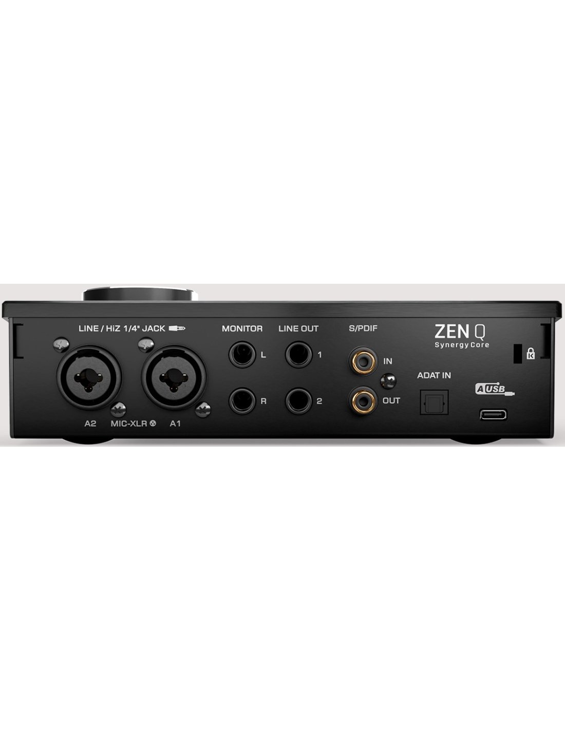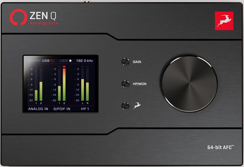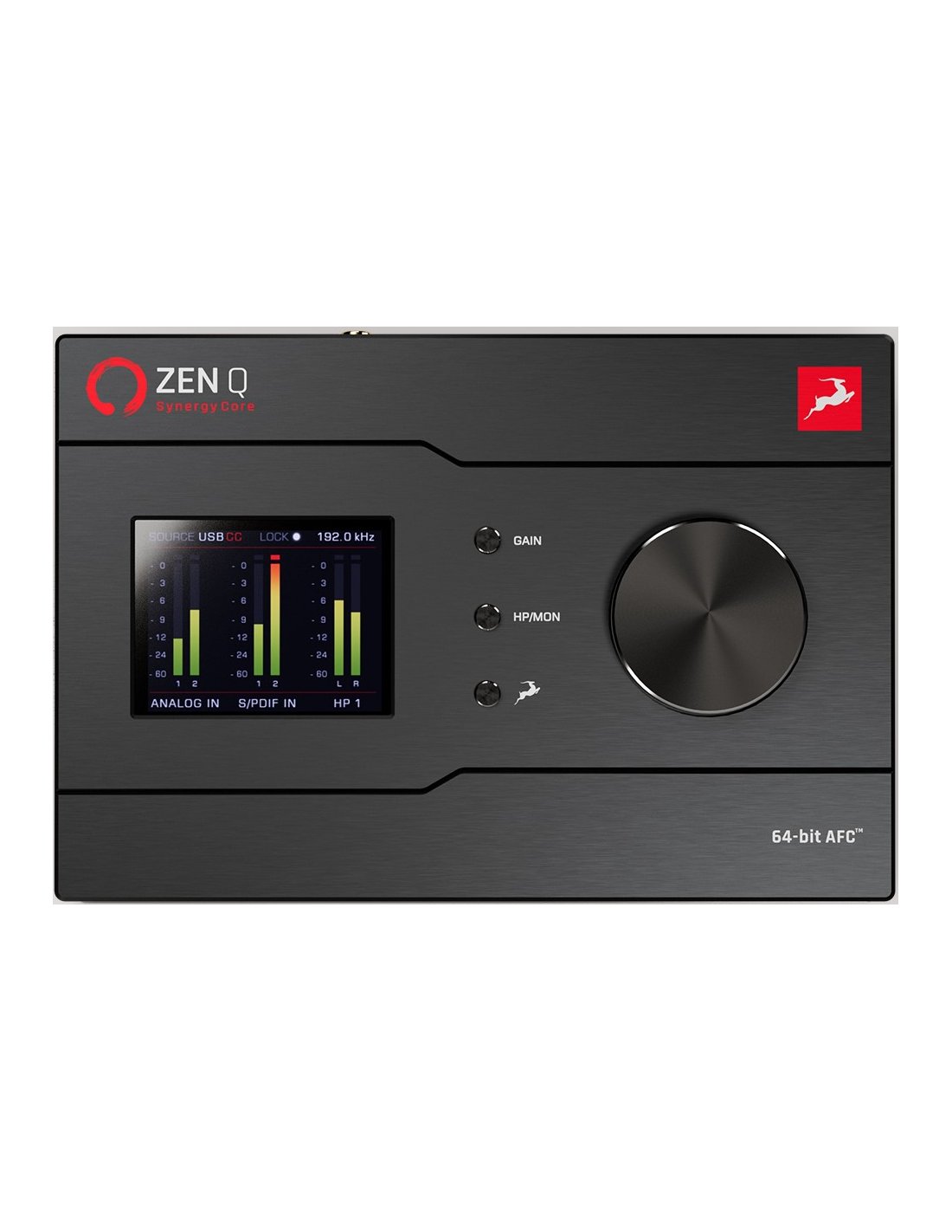 ANTELOPE ZEN Q SYNERGY CORE THUNDERBOLT ist ein Audio-Interface mit 16 Ein- und 16 Ausgängen und Thunderbolt 3-Anschluss. Die technischen Merkmale umfassen einen AD/DA-Wandler mit 127 dB Headroom, eine Abtastrate von 24 Bit/192 kHz, proprietäre AFC-Technologie (Acoustically Focused Clocking) mit 64 Bit und einen Jitter-Management-Algorithmus, 2 diskrete lineare Vorverstärker mit 65 dB Gain, 2 Mikrofon-/Line-/Hi-Z-Eingänge auf Combo-XLR/TRS-Anschlüssen, 2 Hi-Z-/Line-Instrumenteneingänge auf TRS, 2 DC-kopplungsausgänge auf TRS, Thunderbolt 3-Anschluss für den Transport von bis zu 16 Eingangs- und 16 Ausgangskanälen in jeder DAW, 8 Kanäle zur Erweiterung über ADAT In, 2 Kanäle zur Erweiterung über I/O S/PDIF, Stereo-Monitor-Ausgang über TRS L/R, 2 Stereo-Ausgänge für Kopfhörer mit separaten Lautstärkereglern. Es bietet außerdem eine virtuelle Bibliothek von 37 kostenlosen Effekten von der Synergy Core-Effektplattform, eine integrierte proprietäre Synergy Core-Plattform, die von 2x DSP und 1x FPGA-Chip betrieben wird, anpassbare Presets mit Signalrouting, Pegelanpassungen, Mixer und Effekt-Einstellungen, Stromversorgung über den Thunderbolt-Anschluss.