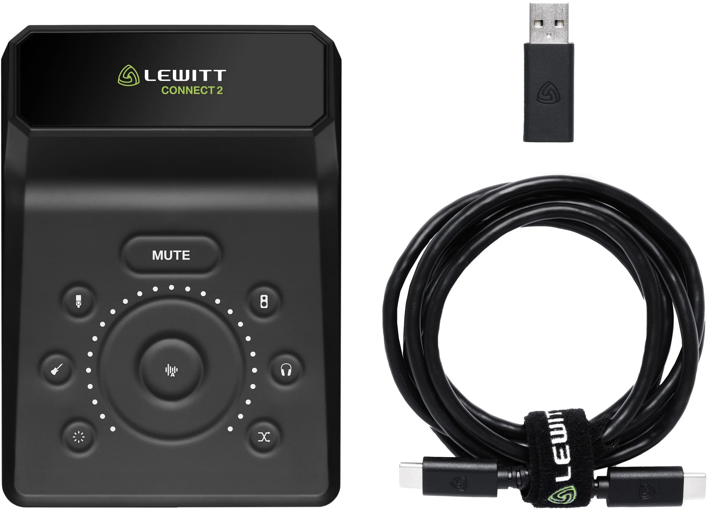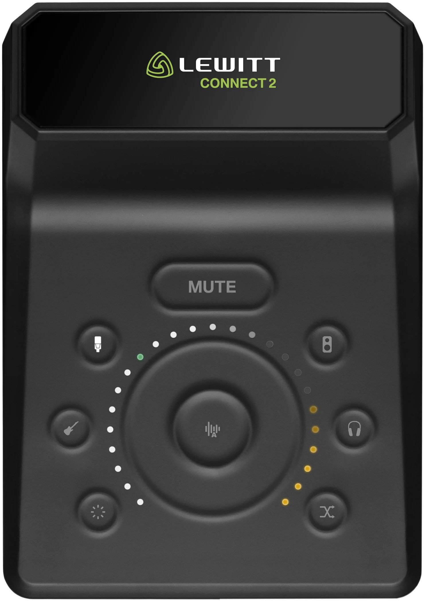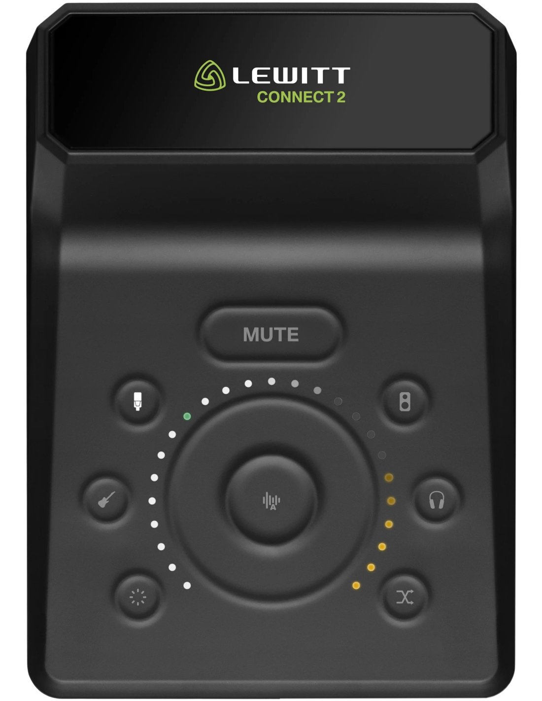 LEWITT CONNECT 2 ist ein USB-Audio-Interface mit 2 Eingängen, Line-Ausgängen, integriertem DSP, Touch-Benutzeroberfläche mit LED-Überwachung und integrierten Effekten. Die technischen Merkmale umfassen ein USB-C-Audio-Interface mit Aufnahme bis zu 24 Bit / 96 kHz, Autosetup-Funktion, Mikrofonvorverstärker mit 72 dB Gain und einem Dynamikbereich von 118 dB an XLR-Anschluss, Hi-Z Instrumenteneingang über 6,3 mm Klinke mit einem Dynamikbereich von 121 dB, Phantomschalter +48 V, integrierter DSP mit 3 Vorverstärker-Modi Clear/Warm/Vivid, Clipguard-Technologie zum Schutz vor Clipping, Kompressor und Denoiser, doppelte Kopfhörerausgänge 6,3 mm/3,5 mm mit Hochimpedanzmodus für Studio-Kopfhörer, 2 symmetrische Ausgänge über 6,3 mm Klinke L/R, benutzerdefinierte Funktion für Workflow-Shortcuts, globale Stummschaltung, Loopback-Kanal zur Aufnahme des internen Computer-Audios, kompatibel mit Mac, Windows und iOS. Enthält die Aufnahme-Software Steinberg Cubase LE und Cubasis LE.