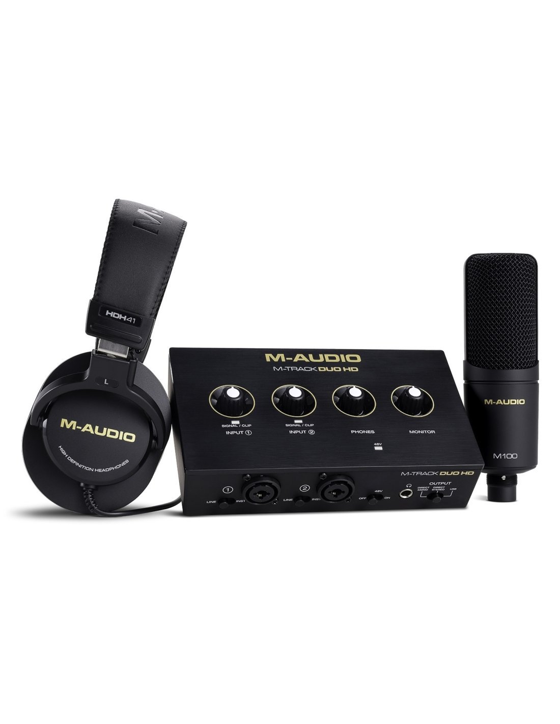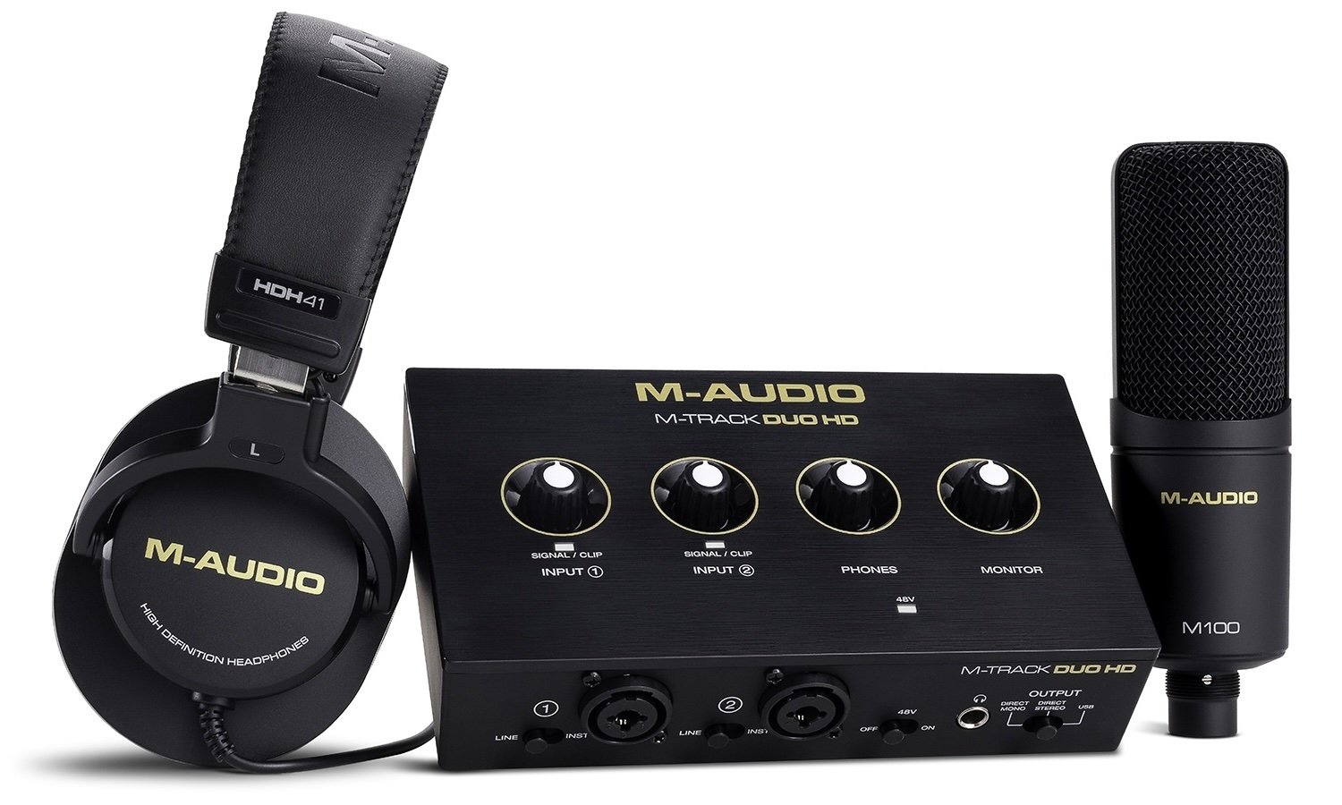 All-in-One-Paket bestehend aus der Audio-Interface M-Audio M-track Duo HD, einem großen Kondensatormikrofon M-Audio M100, den Studio-Kopfhörern M-Audio HDH41 und den Musiksoftware Ableton Live Lite, Reason+, Akai Professional MPC Beats sowie 2 Monaten Abonnement bei Splice, um auf eine umfangreiche Bibliothek von Samples und Loops zugreifen zu können. N.B. Überprüfen Sie auf der Website des Herstellers die minimalen Systemanforderungen und die derzeit unterstützten Betriebssysteme Mac, PC, iOS und Android.