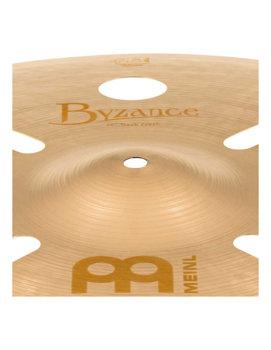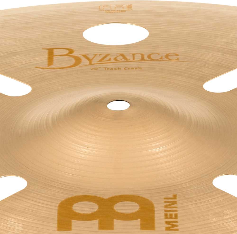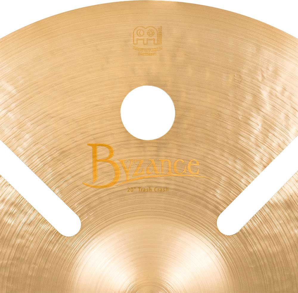 'Crash 20'' Trash, Serie Byzance Vintage. Die Teller der Serie Byzance Vintage werden in unserer Fabrik in der Türkei von Spezialisten handwerklich hergestellt und respektieren die Tradition im gesamten Prozess. Alle Teller sind aus B20-Bronzelegierungen gefertigt. Verschiedene Techniken sind am Prozess beteiligt, sowohl das Hämmern als auch das Drehen. Die Vintage-Oberfläche verleiht jedem Teller einen mittleren Klang, der an viel ältere Becken erinnert. Wirklich angenehm im Mix.