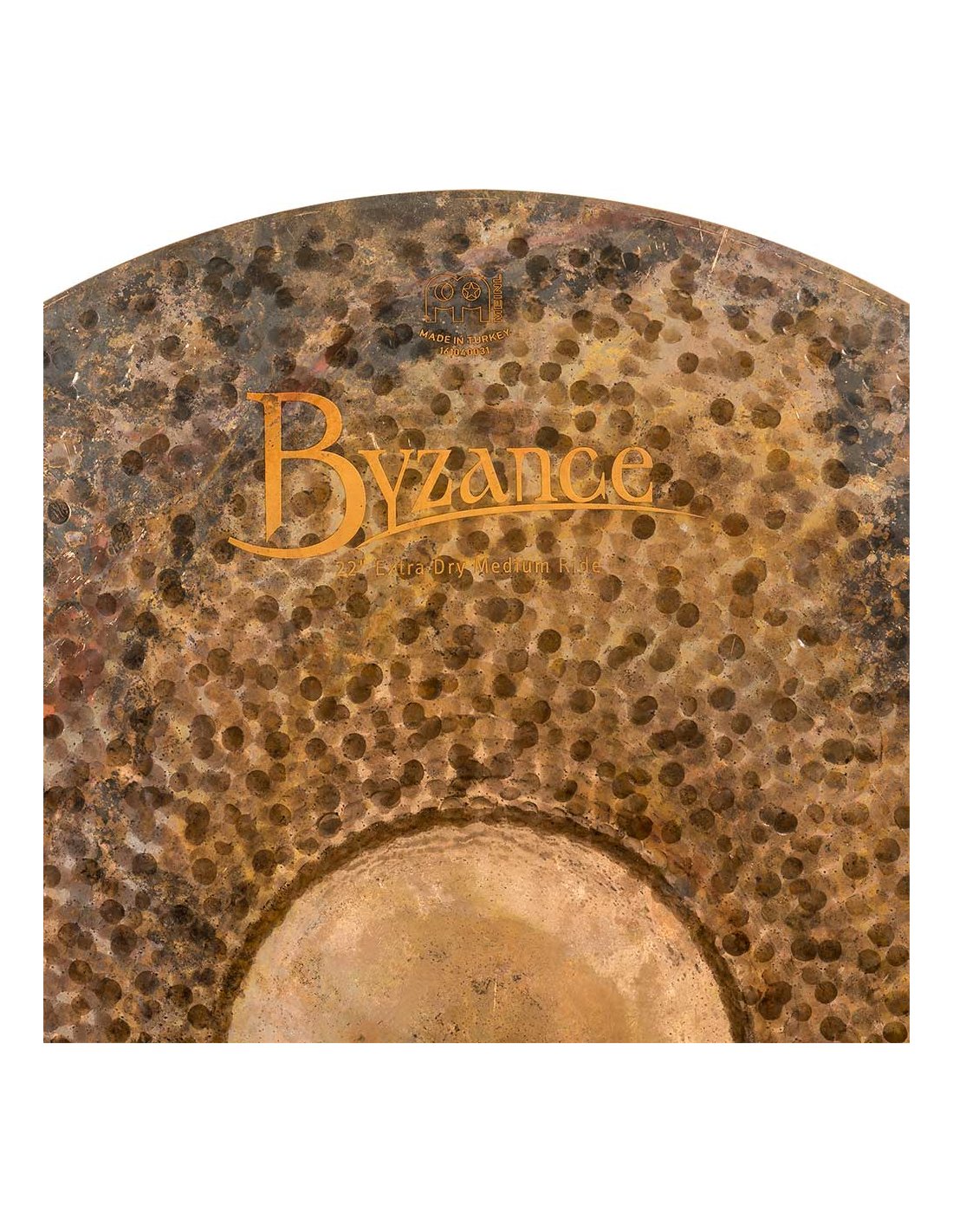 'Ride 22'' Medium, Serie Byzance Extra Dry. Die Becken der Serie Byzance Extra Dry werden handwerklich in unserer Fabrik in der Türkei von Spezialisten und unter Beachtung der Tradition im gesamten Prozess hergestellt. Alle Becken bestehen aus B20-Bronzelegierungen. Verschiedene Techniken sind am Prozess beteiligt, sowohl das Hämmern als auch das Drehen. Die nicht gedrehte Oberflächenbearbeitung und die gehämmerte größere Durchmesser zusammen mit dem vollständig gedrehten Boden des Beckens machen die Serie einzigartig. Mit einem explosiven Klang, etwas trashig und mit wenig Sustain. Diese Becken haben ein völlig einzigartiges Klanguniversum geschaffen.