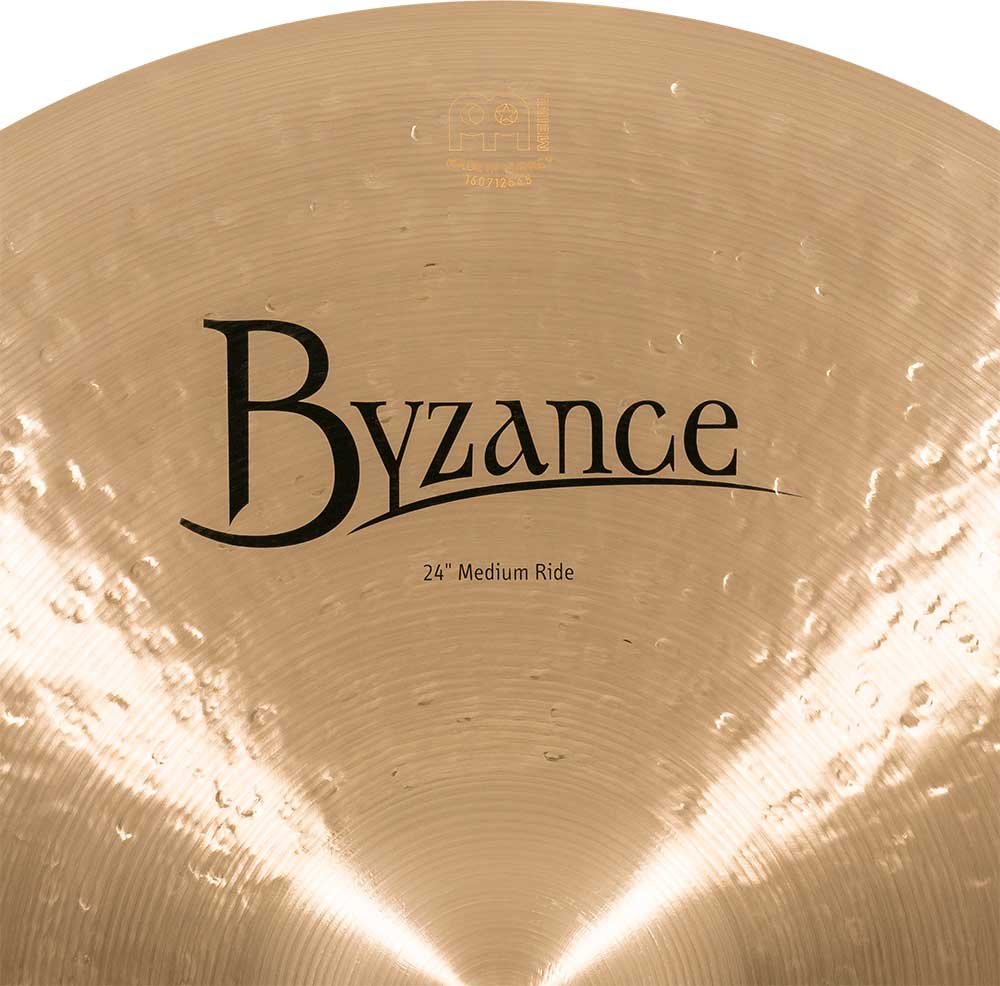 'Ride 24'' Medium, Serie Byzance Traditional. Die Becken der Serie Byzance Traditional werden in unserer Fabrik in der Türkei von Spezialisten handgefertigt und respektieren die Tradition im gesamten Prozess. Alle Becken bestehen aus B20 Bronzelegierungen. Verschiedene Techniken sind am Prozess beteiligt, sowohl das Hämmern als auch das Drehen. Die traditionelle Verarbeitung verleiht der Serie den klassischen Klang des türkischen Beckens, den wir seit über einem Jahrhundert hören.