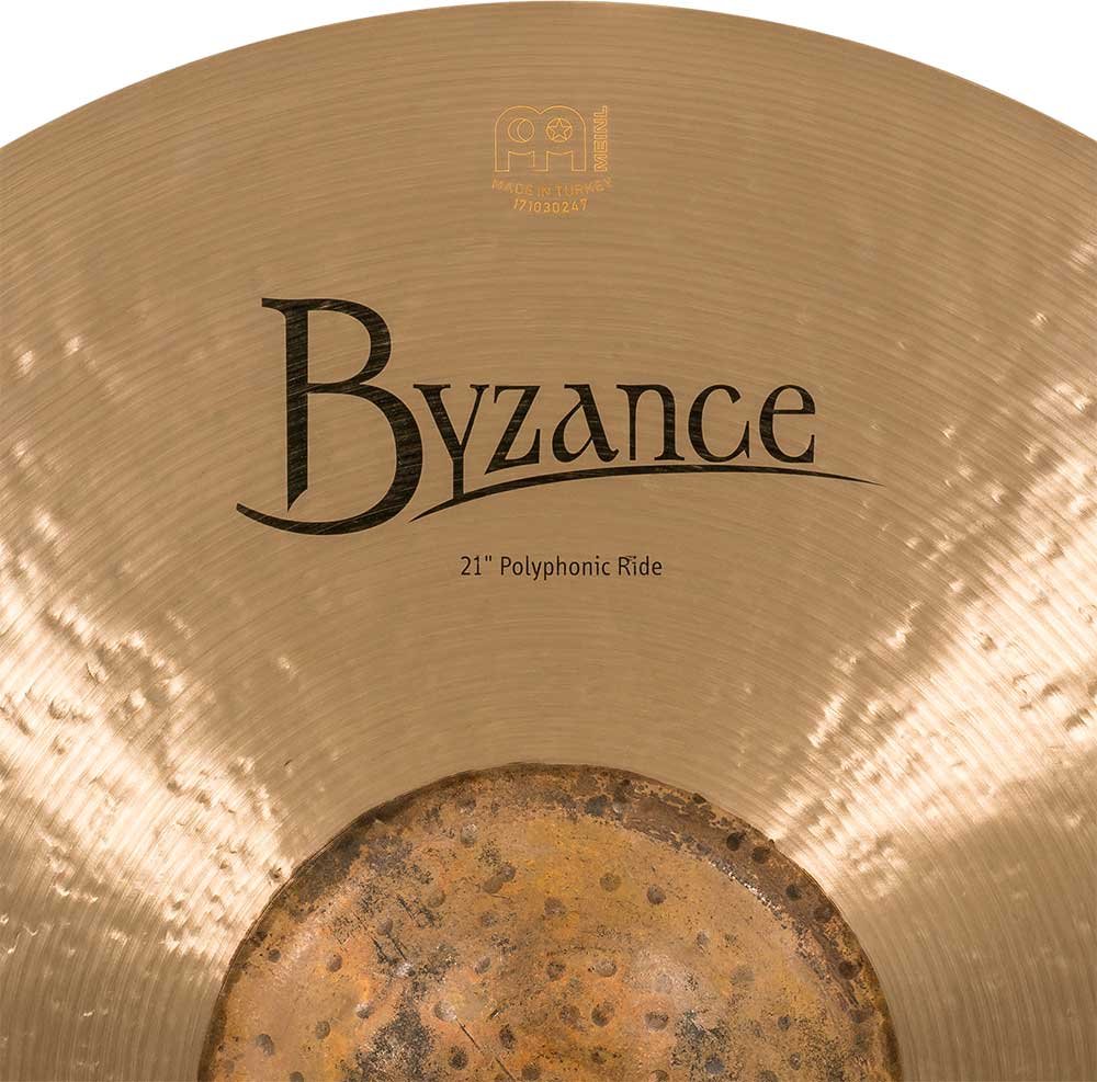 'Ride 21'' Polifonico, Serie Byzance Traditional. Die Becken der Serie Byzance Traditional werden in unserer Fabrik in der Türkei von Spezialisten handgefertigt und respektieren die Tradition im gesamten Prozess. Alle Platten sind aus B20-Bronzelegierungen gefertigt. Verschiedene Techniken sind am Prozess beteiligt, sowohl das Hämmern als auch das Drehen. Die traditionelle Verarbeitung verleiht der Serie den klassischen Klang des türkischen Beckens, den wir seit über einem Jahrhundert hören.