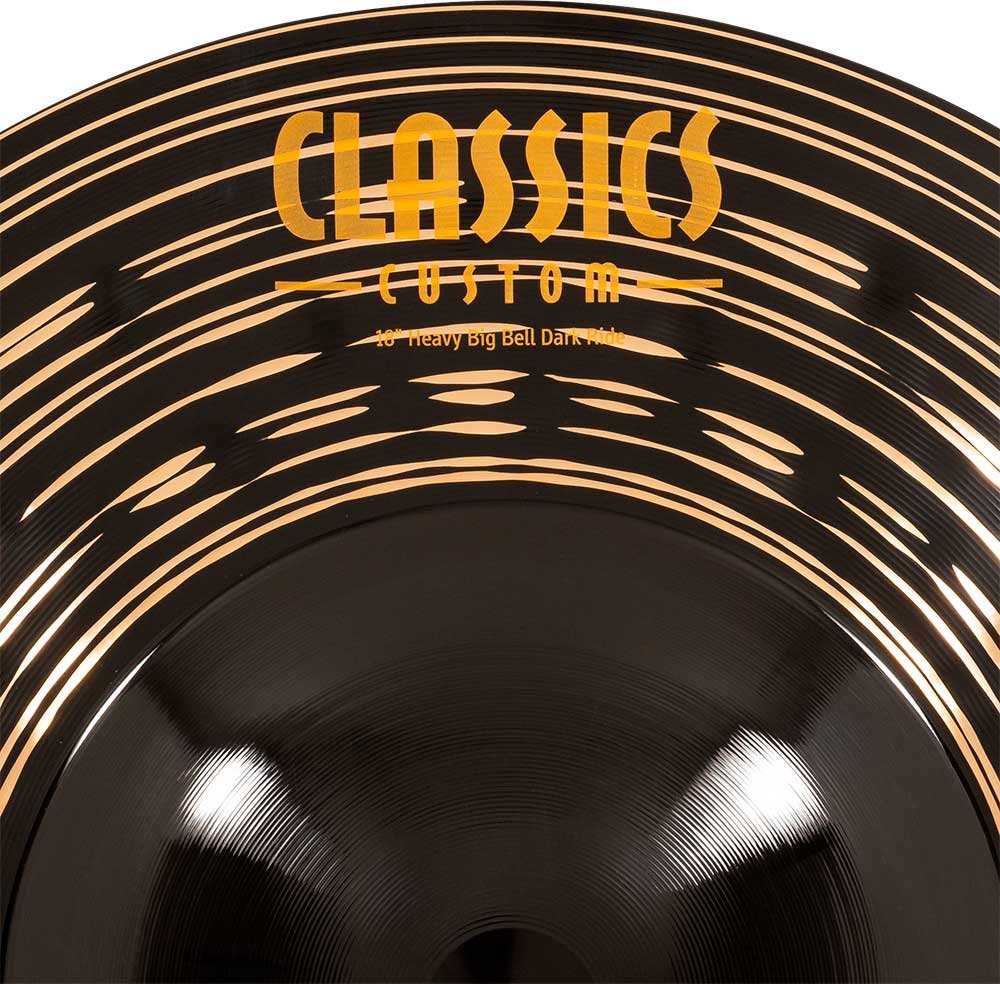'''Heavy Bell Ride 18'' Serie Classics Custom Dark. Die Becken der Serie Classics Custom Dark werden mechanisch in Deutschland aus B10-Legierung hergestellt. Der Prozess umfasst verschiedene Techniken, sowohl Pressen als auch computergestütztes Hämmern. Darüber hinaus haben sie eine glänzende schwarze Oberfläche, die ihnen ein spektakuläres Aussehen und einen besonderen Klang verleiht.