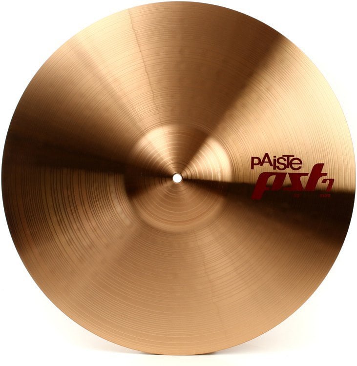 PAISTE PST-7 20 RIDE. Ride mit 20" aus Bronze CuSn8, reguläre Oberfläche, mittleres Gewicht, mittleres Volumen, markanter und durchdringender Ping, mittlerer Sustain und kristallklarer, ausgewogener Klang. Geeignet für verschiedene Musikgenres.