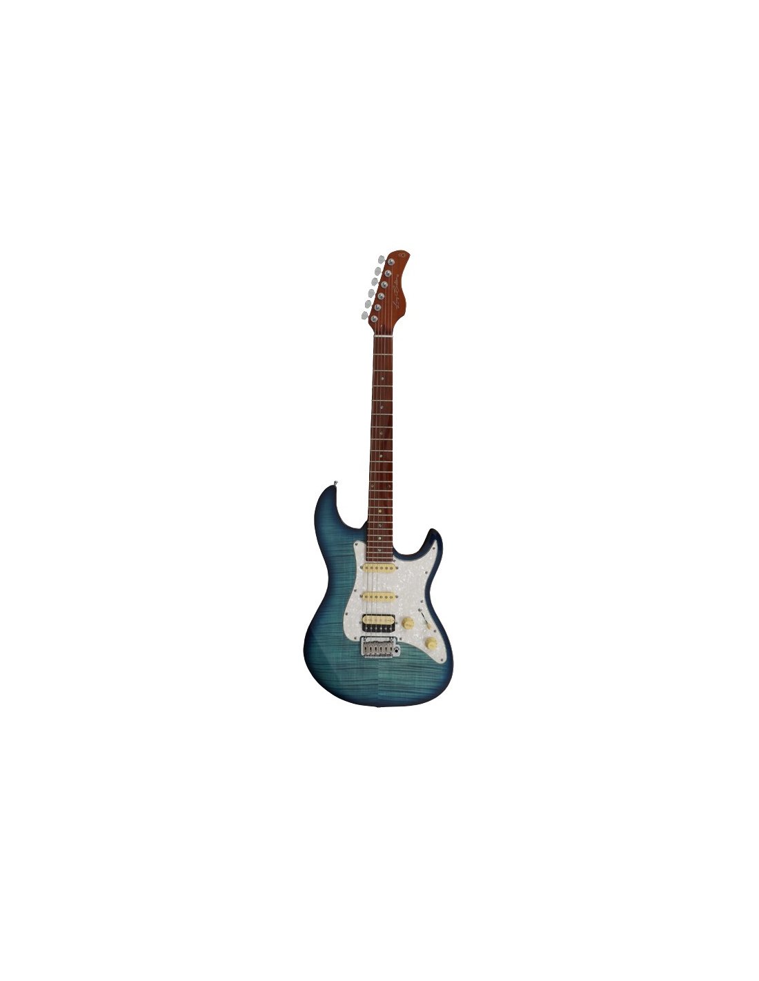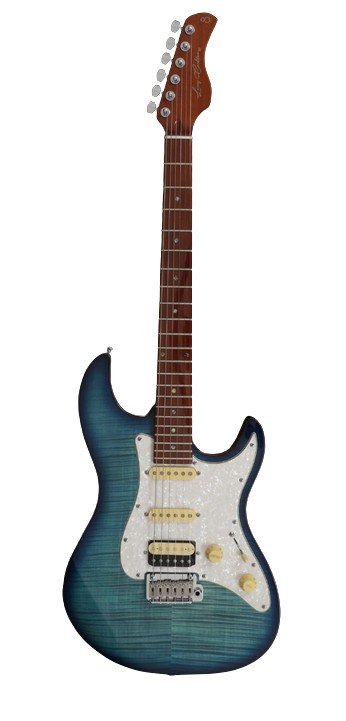 LARRY CARLTON S7 FM TBL V2 ist eine E-Gitarre mit solidem Korpus und 6 Saiten. Die technischen Merkmale umfassen: Korpus aus nordamerikanischem Erle, Hals aus geröstetem Ahorn mit "C"-Profil, Griffbrett mit 9,5" Radius aus geröstetem Ahorn mit 22 Medium Jumbo Bünden und Dot Blocks Einlagen aus Abalone, Sattel aus Knochen, Sire S7 Tremolo 2-Post Bridge, Sire Premium Locking Mechaniken in Chrom, Elektronik in HSS-Konfiguration mit Sire 1 S7 Zebra Humbucker am Steg und 2 Sire 2 S7 Single Coil Pickups in der Mitte und am Hals mit Volume-, Ton-Push/Pull-Regler und 5-Wege-Pickup-Wahlschalter. Farbe Translucent Blue. Tasche nicht enthalten.
