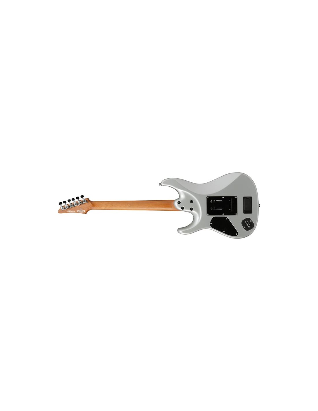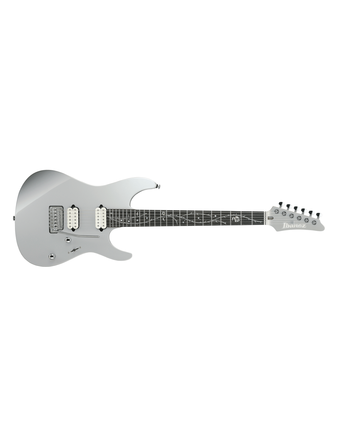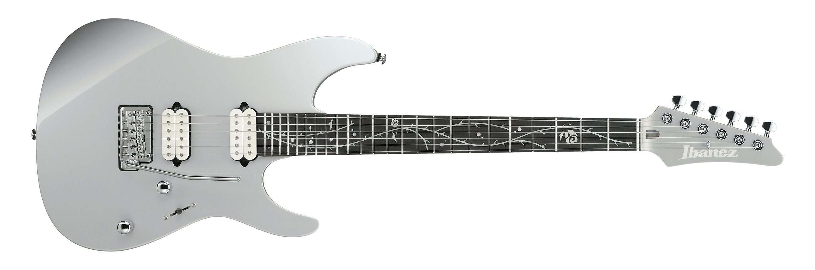 IBANEZ TOD10 TIM HENSON. E-Gitarre der Serie TOD10 Tim Henson Signature mit Korpus aus amerikanischem Erle, Roasted Ahorn-Hals in Ibanez AZ Oval "C"-Form, Ebenholz-Griffbrett mit 12"-Radius und 24 Jumbo-Edelstahlbünden, Einlagen "Tree of Death" und Classic Silver-Finish. Die HH-Konfiguration der Elektronik ist mit 2 Fishman Fluence Tim Henson Signature Series Humbuckern ausgestattet und verfügt über Master Volume, Master Tone und Fishman Fluence Voicing Switch am Tone-Control (push/pull). Außerdem ist sie mit einem Tremolo-Bridge mit Gotoh T1502 Hebel, Graph Tech Sattel, selbstsichernden Gotoh Mechaniken und verchromtem Hardware ausgestattet.