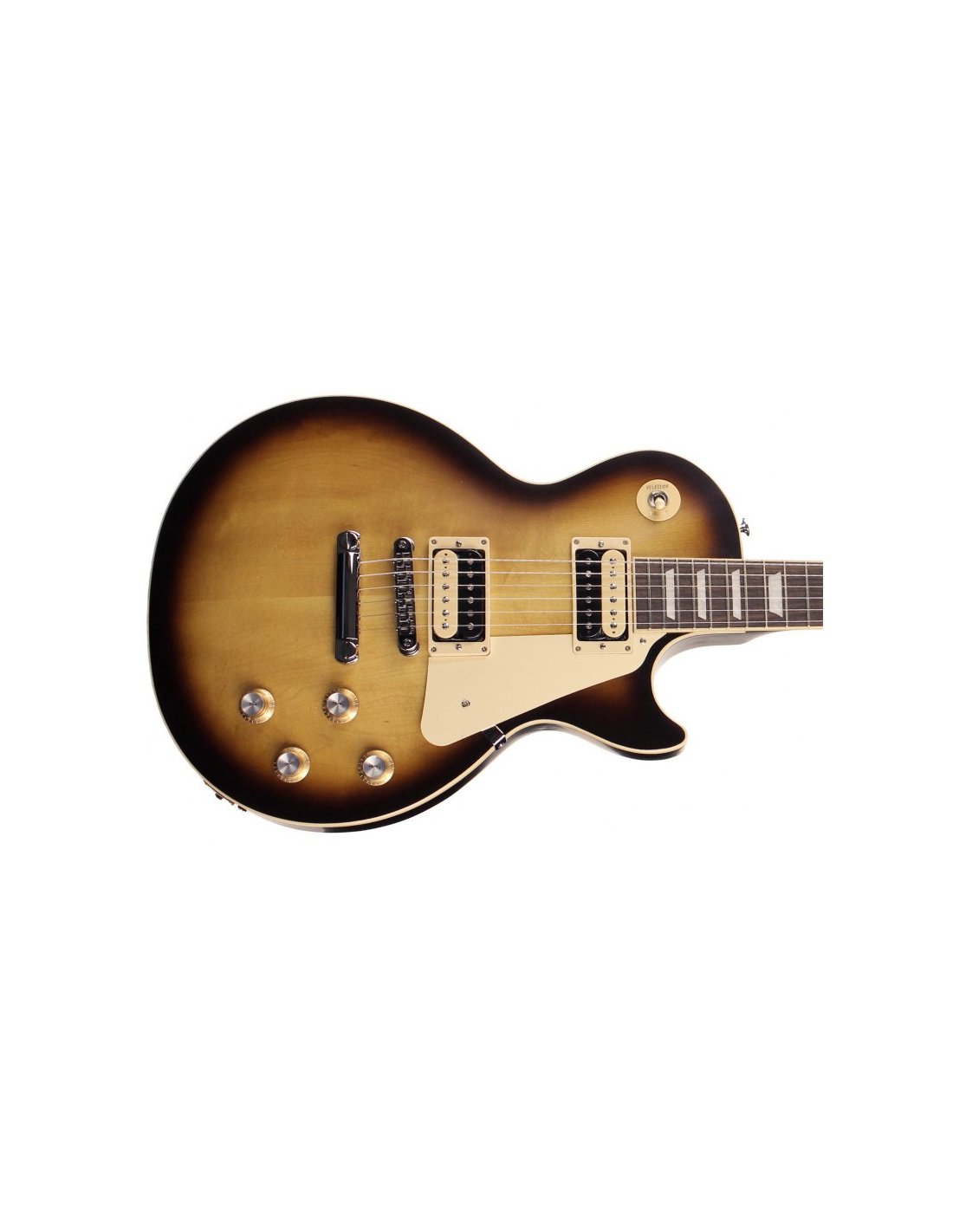 GIBSON LES PAUL TRADITIONAL PRO V SATIN BURST. E-Gitarre Gibson Les Paul Traditional Pro mit Satin Burst-Finish. Die technischen Merkmale umfassen einen Korpus aus Mahagoni, eine AA-figurierten Ahorn-Decke, einen Mahagoni-Hals mit asymmetrischem Slim Taper-Profil, ein 12"-Radius-Griffbrett aus indischem Palisander mit 22 Medium Jumbo-Bünden und trapezförmigen Einlagen aus Celluloid. Die Elektronik ist mit 2 Tradbucker V-Tonabnehmern am Hals und am Steg ausgestattet, CTS-Potentiometern, Bumble Bee-Kondensatoren, 2 Push/Pull-Volume-Reglern, 2 Push/Pull-Tone-Reglern mit Pure Bypass, Phasenschalter und einem 5-Wege-Wahlschalter. Außerdem verfügt sie über vernickeltes Hardware, Grover Rotomatic-Mechaniken mit Amber Top Hats, eine Aluminium Nashville Tune-O-Matic-Brücke mit Aluminium-Stopbar. Im Lieferumfang ist ein Gibson-Hartschalenkoffer enthalten.