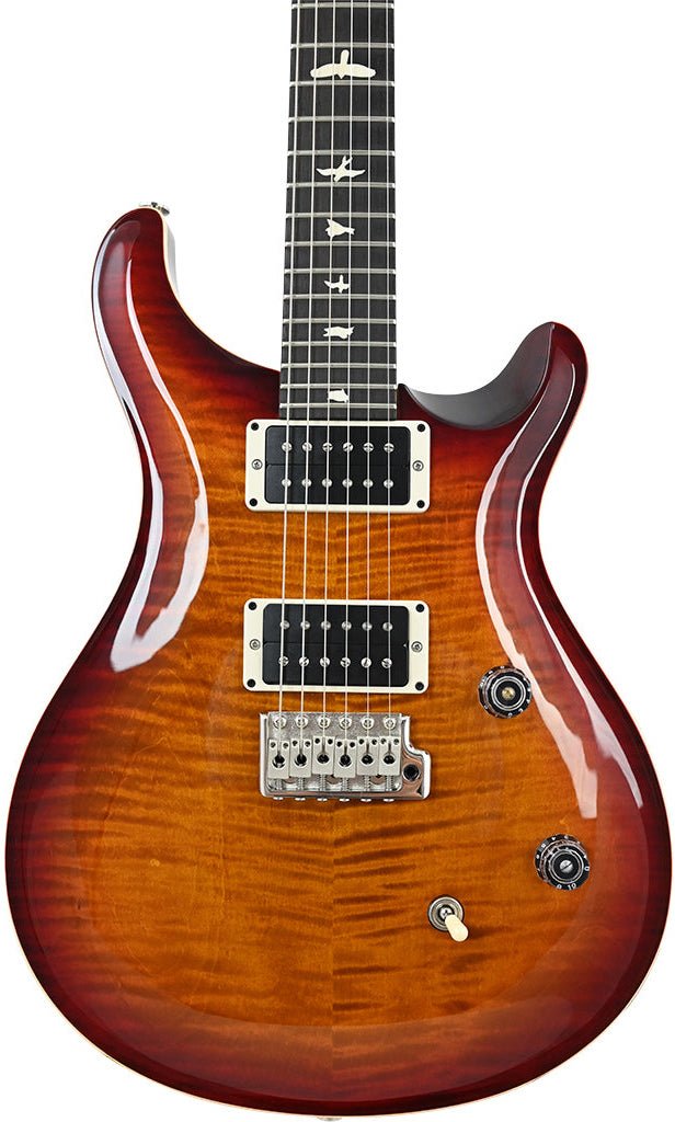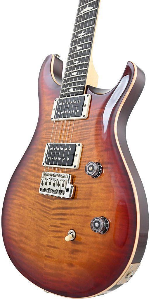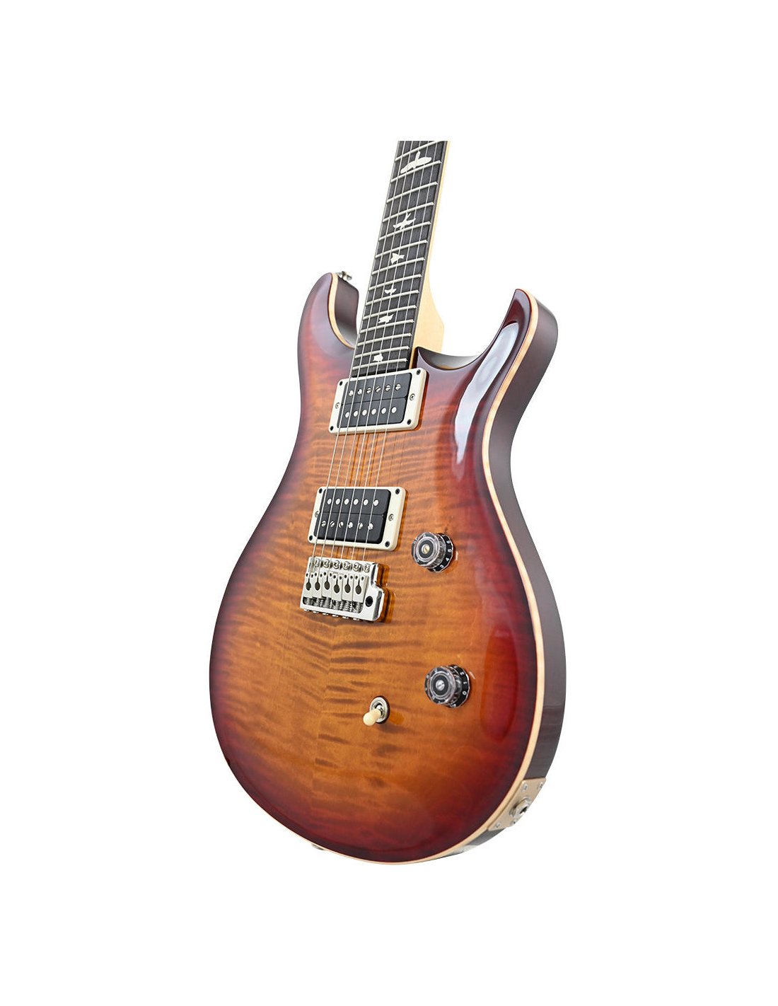 E-Gitarre PRS CE24 HFS Farbe DUNKEL KIRSCHEN-SUNBURST. Die PRS CE24 HFS ist eine E-Gitarre mit 6 Saiten. Die technischen Merkmale umfassen einen Korpus aus Mahagoni, eine Decke und einen Hals aus Ahorn mit schlankem Profil, ein Griffbrett aus Palisander mit 24 Jumbo-Bünden, HFS (Hot Fat Screams) Humbucker-Tonabnehmer an der Brücke und am Hals, PRS Tremolo und vernickeltes Hardware.