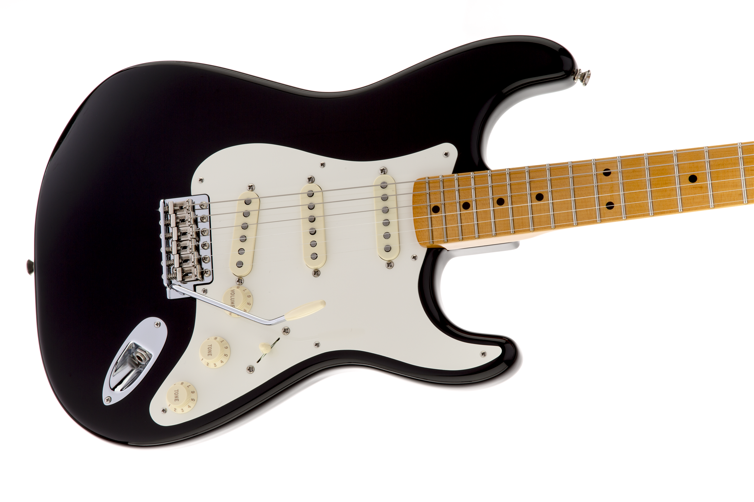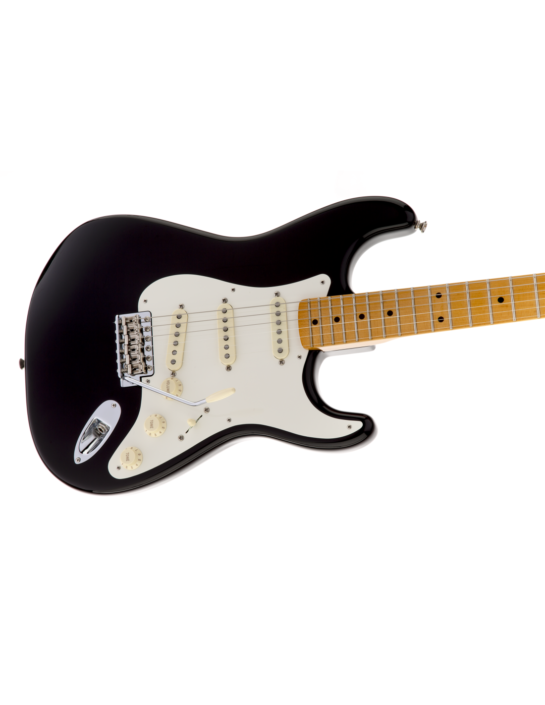 E-Gitarre Fender Eric Johnson Stratocaster, Farbe Schwarz. Die Fender Eric Johnson Stratocaster ist eine 6-saitige E-Gitarre der Artist-Serie, die mit den einzigartigen technischen Eigenschaften gefertigt wurde, die Eric Johnson verlangt. Sie verfügt über einen viertelgeschnittenen Ahornhals mit glänzender Nitrocellulose-Oberfläche, Soft V-Profil, Ahorn-Griffbrett mit 12” Radius, 21 Medium Jumbo Bünde, Mensur 25 1/2”. Korpus aus Esche, mit glänzender schwarzer Nitrocellulose-Oberfläche und einlagigem weißen Pickguard. Die Elektronik umfasst 3 speziell abgestimmte Eric Johnson Single-Coil Strat-Pickups. Die Bedienelemente sind: Master Volume, Tone 1, Tone 2. 5-Wege-Wahlschalter. Nickel/Chrom-Hardware. American Vintage 6-Saiten-Vibrato. American Vintage staggered Mechaniken. Deluxe Hartschalenkoffer im Lieferumfang enthalten.