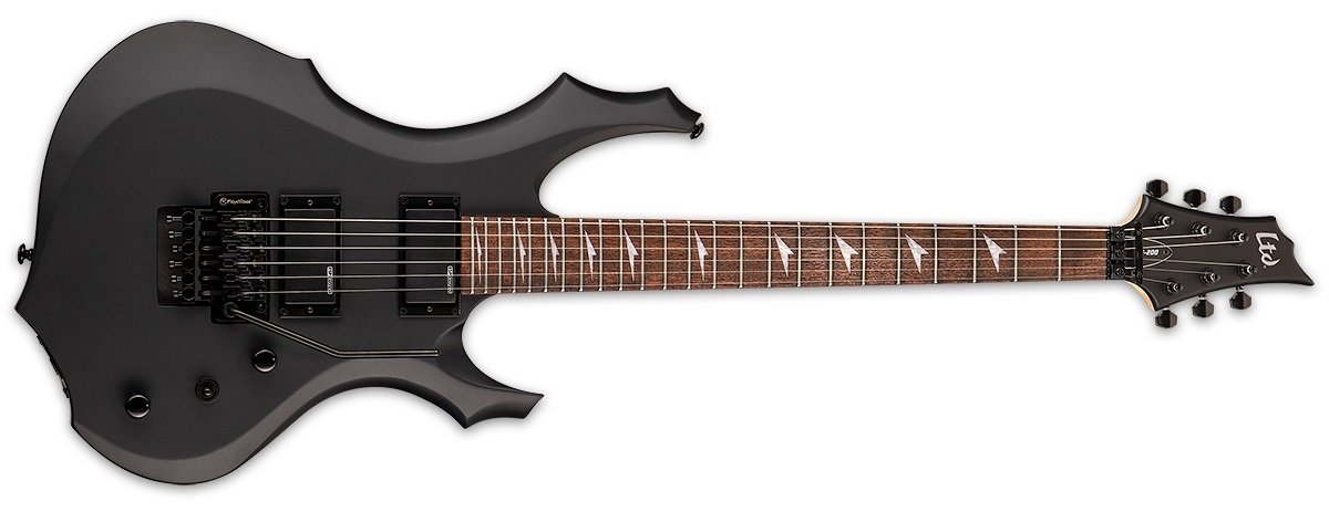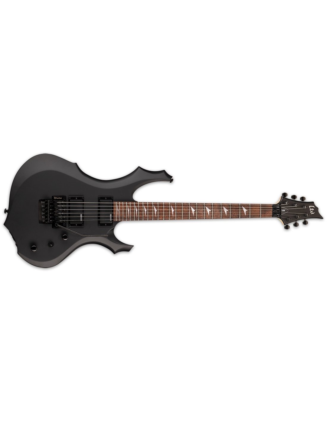 Bolt-on Konstruktion - Maßstab 24,75'' - Korpus aus Mahagoni - 3-teiliges Ahorn-Hals mit „Thin U“-Profil - Röst-Jatoba-Griffbrett mit 24 extra Jumbo-Bünden - Radius 14” - Sattel von 42 mm - Schwarze Hardware - Tremolo FR von Floyd Rose - LTD Mechaniken - Pickup ESP LH-301NLH-301B / - D'Addario XL120 Saiten (.009/.011/.016/.024/.032/.042)
