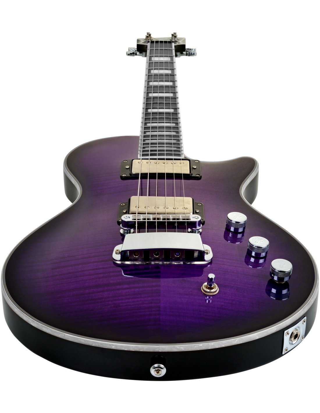 Der Ultra Max teilt dasselbe Konzept eines kleinen Körpers wie der Ultra Swede, jedoch mit einem leicht größeren Mahagoni-Korpus, der von einer dicken, geflammten Ahorn-Decke gekrönt wird. Der Korpus ist mit einem Mahagoni-Hals mit Zapfen- und Schlitzverbindung verbunden und hat eine Mensur von 25,50', selbstverständlich ausgestattet mit einem H-Expander™ Truss Rod und einem Resinator™ Griffbrett. Sein eleganter 'Ultra-komfortabler Schnellhals' ist mit unseren Custom 60 Alnico-5 Tonabnehmern kombiniert, die mit ihren eleganten gebürsteten Aluminium-Abdeckungen die durchdringende Stimme bieten, die dieses Instrument benötigt.