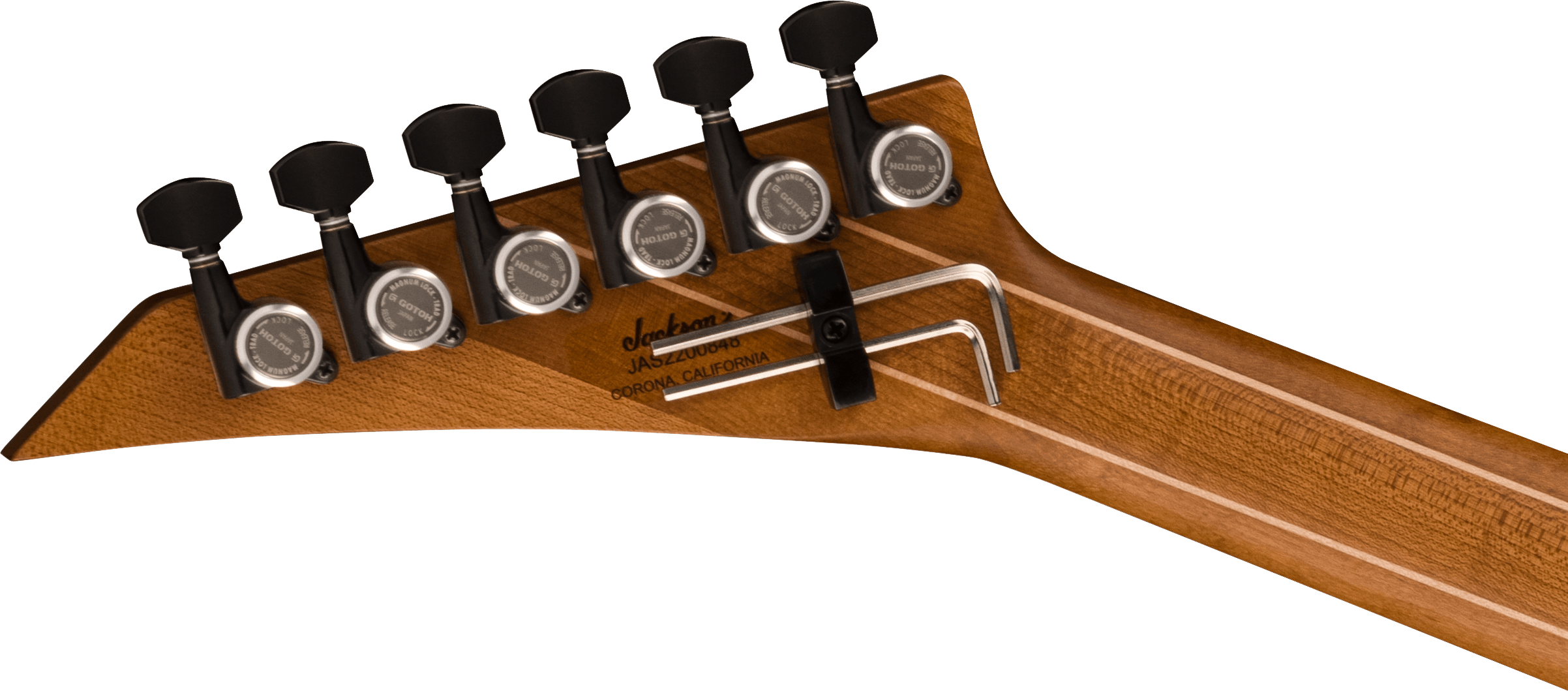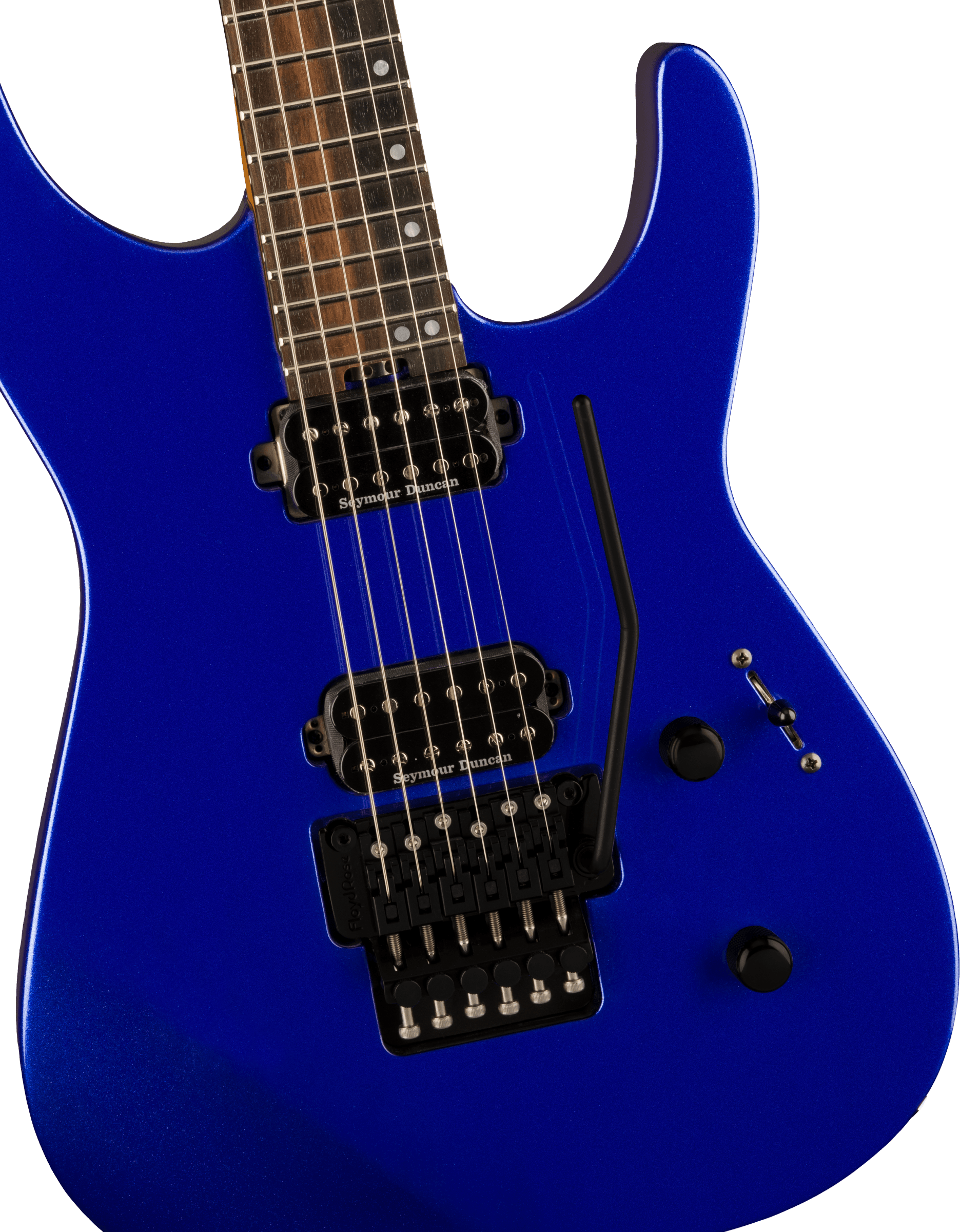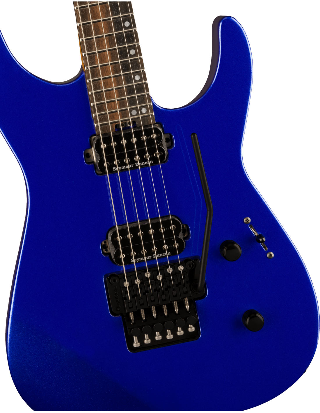 JACKSON AMERICAN SRS VIRTUOSO MYSTIC BLUE ist eine E-Gitarre mit solidem Korpus, Modell American Series Virtuoso mit Korpus aus Alder (Erle) und satiniertem Finish, 5-teiligem Hals aus Caramelized Ahorn/Ahorn mit Graphitverstärkungen, Griffbrett aus gestreiftem Ebenholz mit einem kompositionalen Radius von 12"-16" und 24 Jumbo-Bünden sowie Mother of Pearl Offset Dot Einlagen mit seitlichen Luminlay-Punkten, Truss Rod mit dualer Aktion, Floyd Rose 1500 Series Locking Sattel, schwarze Hardware, Dunlop dual-locking Gurtpins, selbstsichernde Gotoh MG-T Locking Mechaniken und Floyd Rose 1500 Series Double-Locking Tremolo. Die Elektronik in HH-Konfiguration besteht aus 2 Seymour Duncan JB TB-4 Humbuckern, die direkt am Steg montiert sind, und einem Seymour Duncan '59 SH-1N Direct-Mount am Hals, mit Master Volume, Master Tone und einem 5-Wege-Pickup-Wahlschalter. Inklusive Jackson Foam Core Case