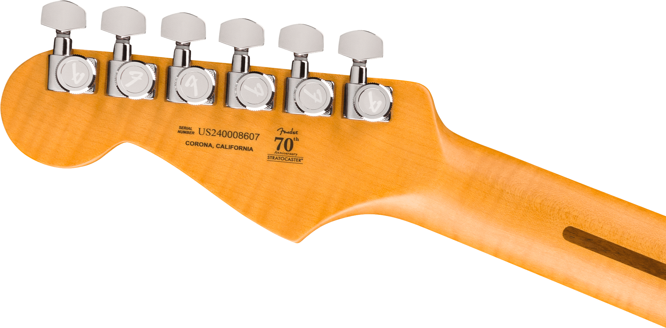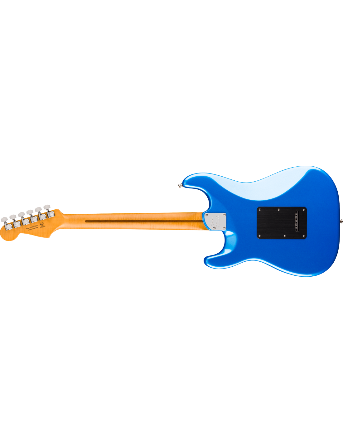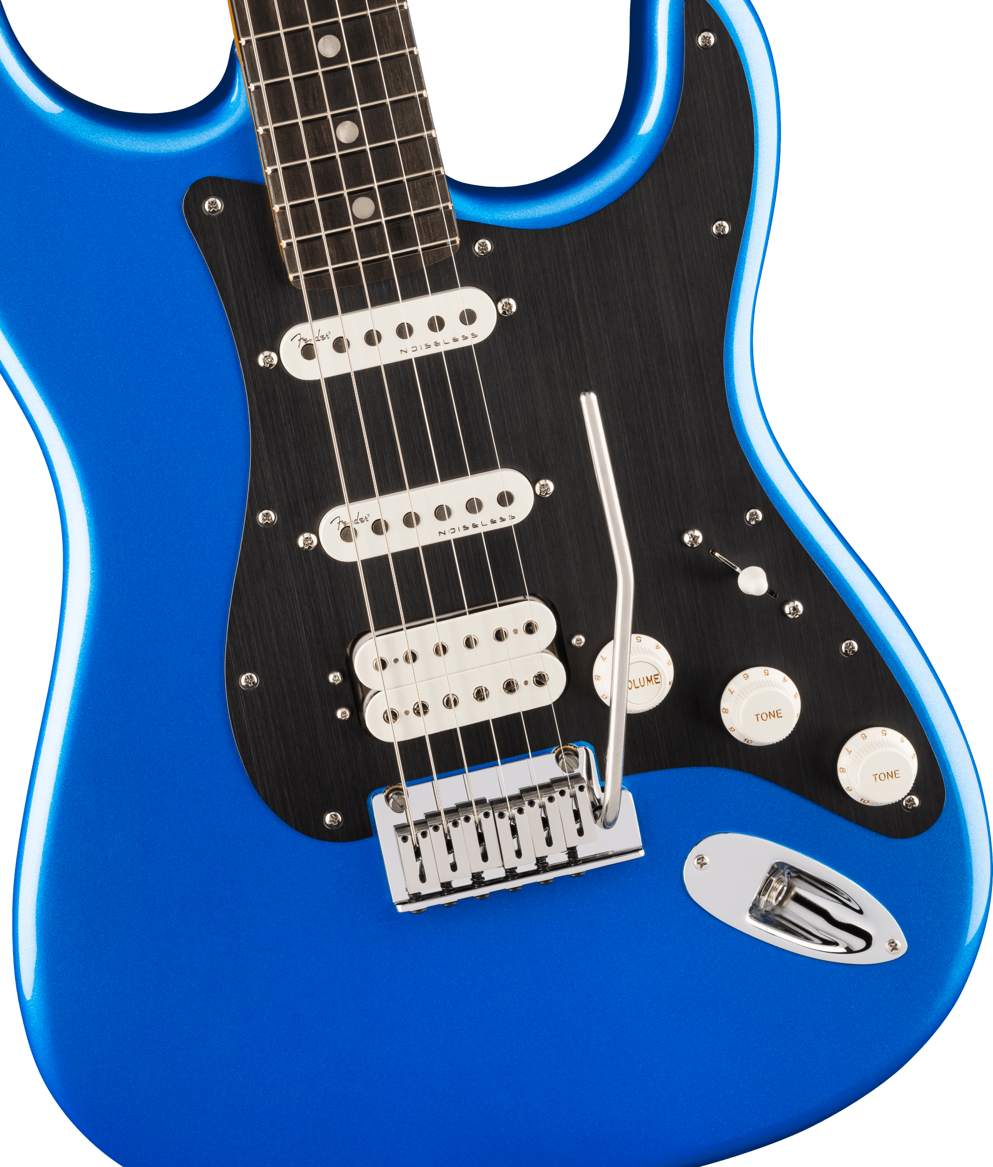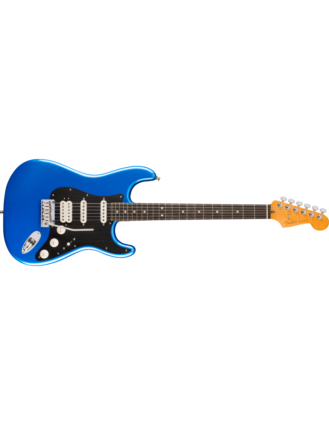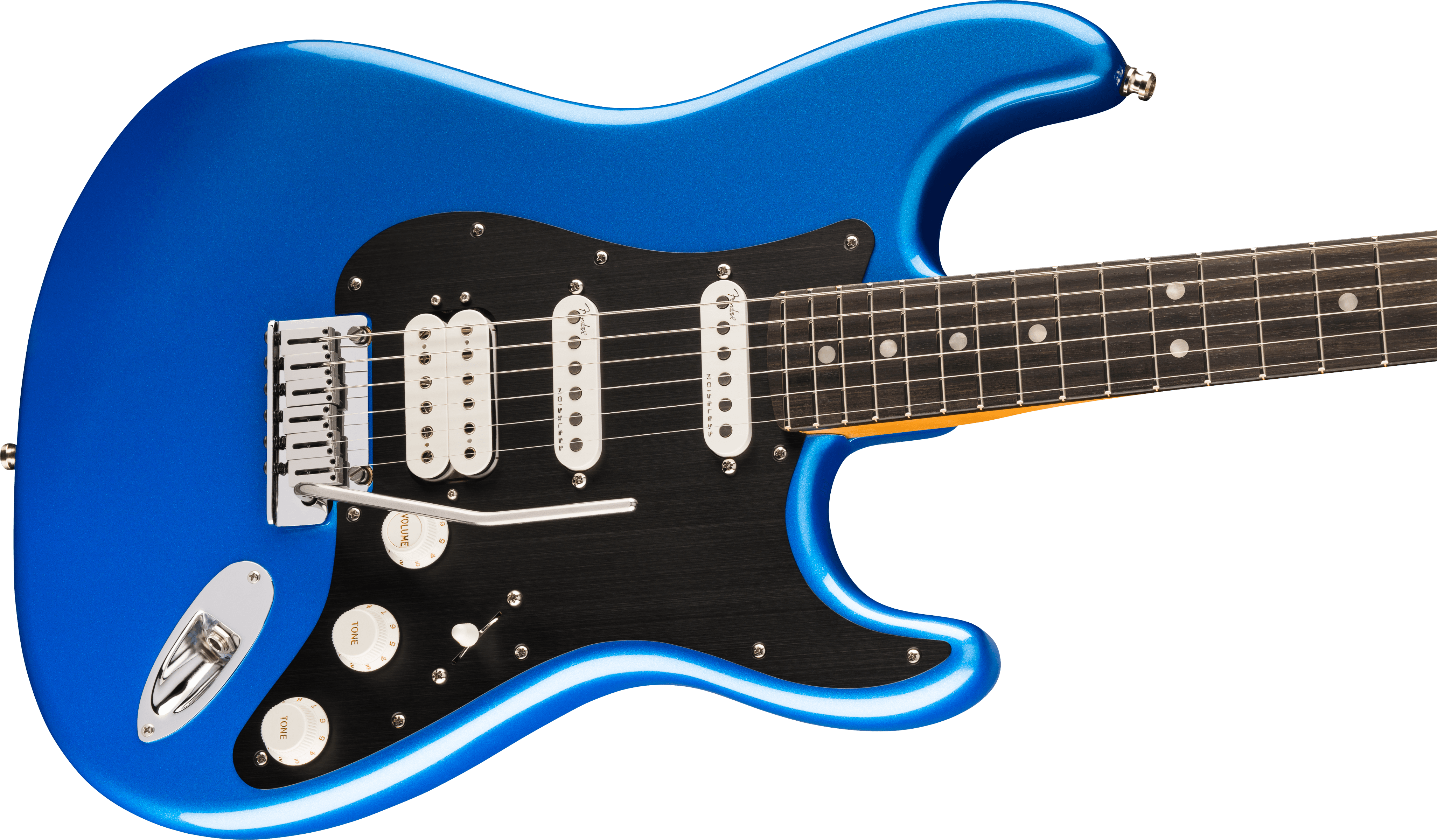 FENDER AM ULTRA II STRAT HSS EB NOBLE BLUE ist eine E-Gitarre im Solid Body-Design, Modell American Ultra II Stratocaster HSS, mit einem Korpus aus ausgewähltem Alder (Erle) und einer Gloss Uretane-Oberfläche, einem Hals aus Quartersawn Ahorn im modernen "D"-Profil, einem Griffbrett aus Ebenholz mit einem kompositem Radius von 10"-14" mit 22 Medium Jumbo-Bünden und White Pearloid Dots mit Luminlay-Seitenpunkten, einem Bi-Flex Truss Rod, einem Graph Tech TUSQ Sattel, vernickeltem Hardware, Fender Deluxe Cast/Sealed Locking Mechaniken mit Ultra String Guide und einem synchronisierten American Ultra Tremolo mit einem Block aus kaltlaminiertem Stahl. Die HSS-Elektronik besteht aus 1 Haymaker Humbucker am Steg und 2 Ultra II Noiseless Hot Strat Single Coils in der Mitte und am Hals, mit einem Master Volume-Regler mit S-1 Switch für den Coil Split des Humbucker-Pickups, 2 Tone-Reglern und einem 5-Wege-Pickup-Wahlschalter. Inklusive Deluxe Molded Case