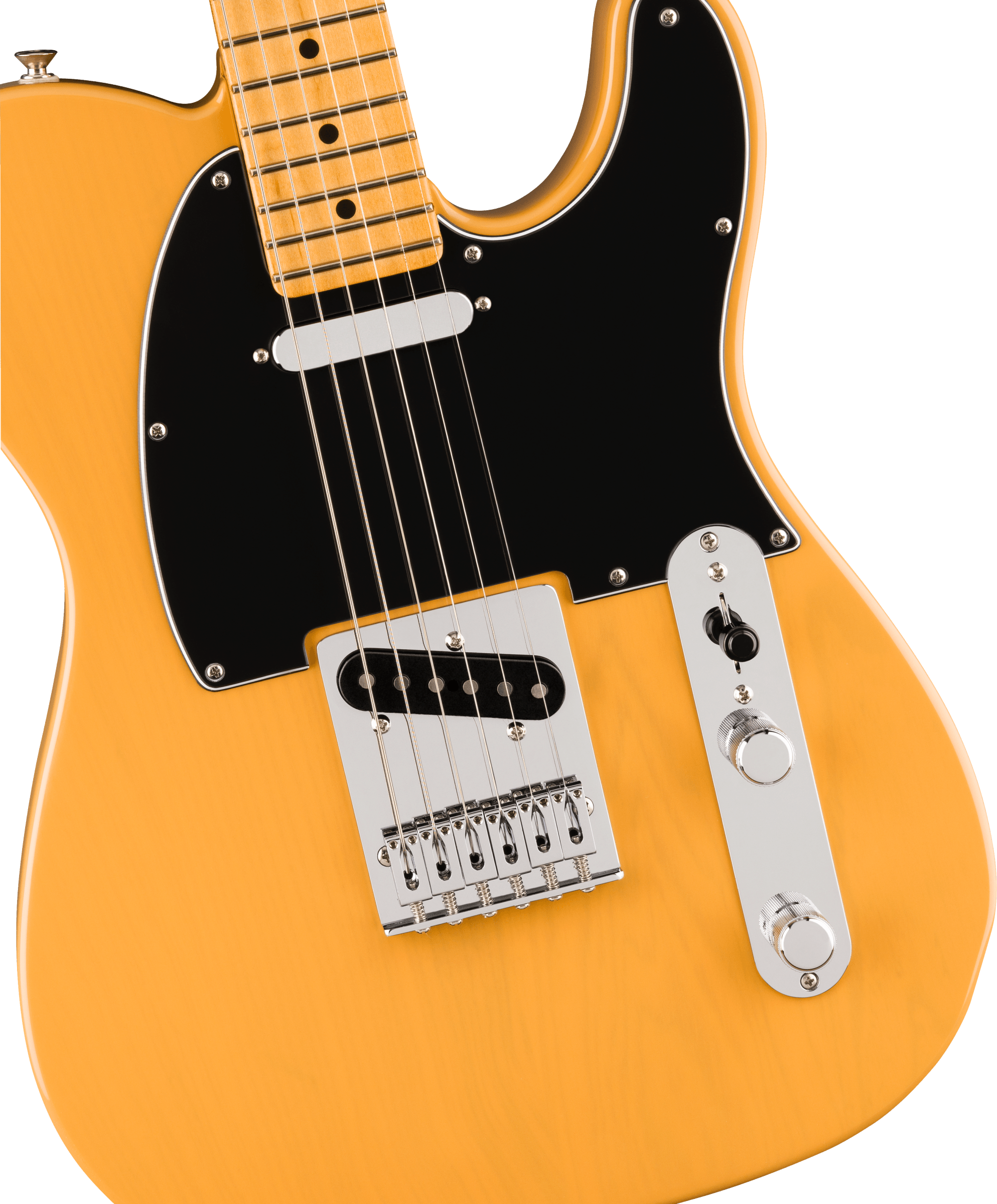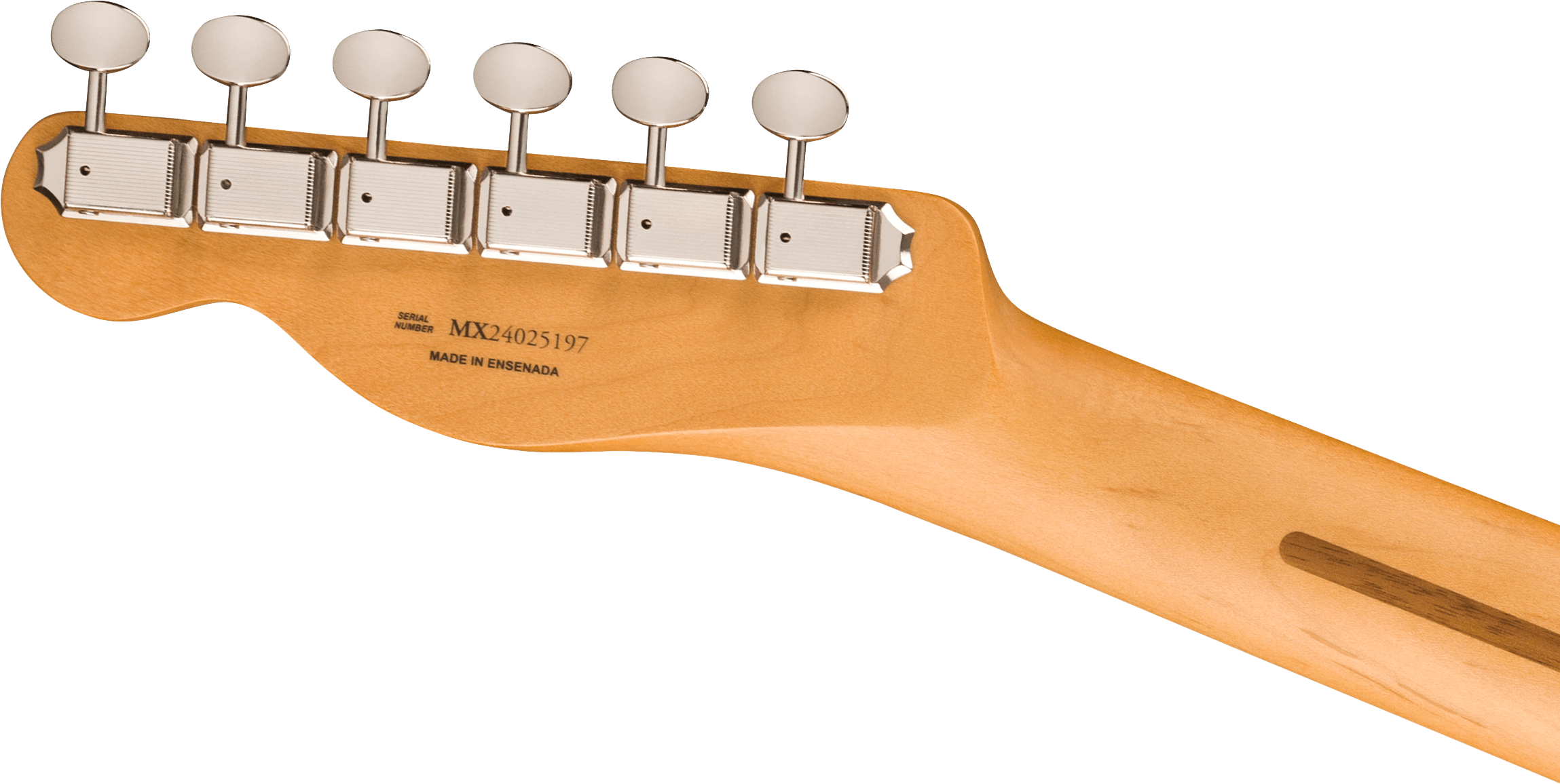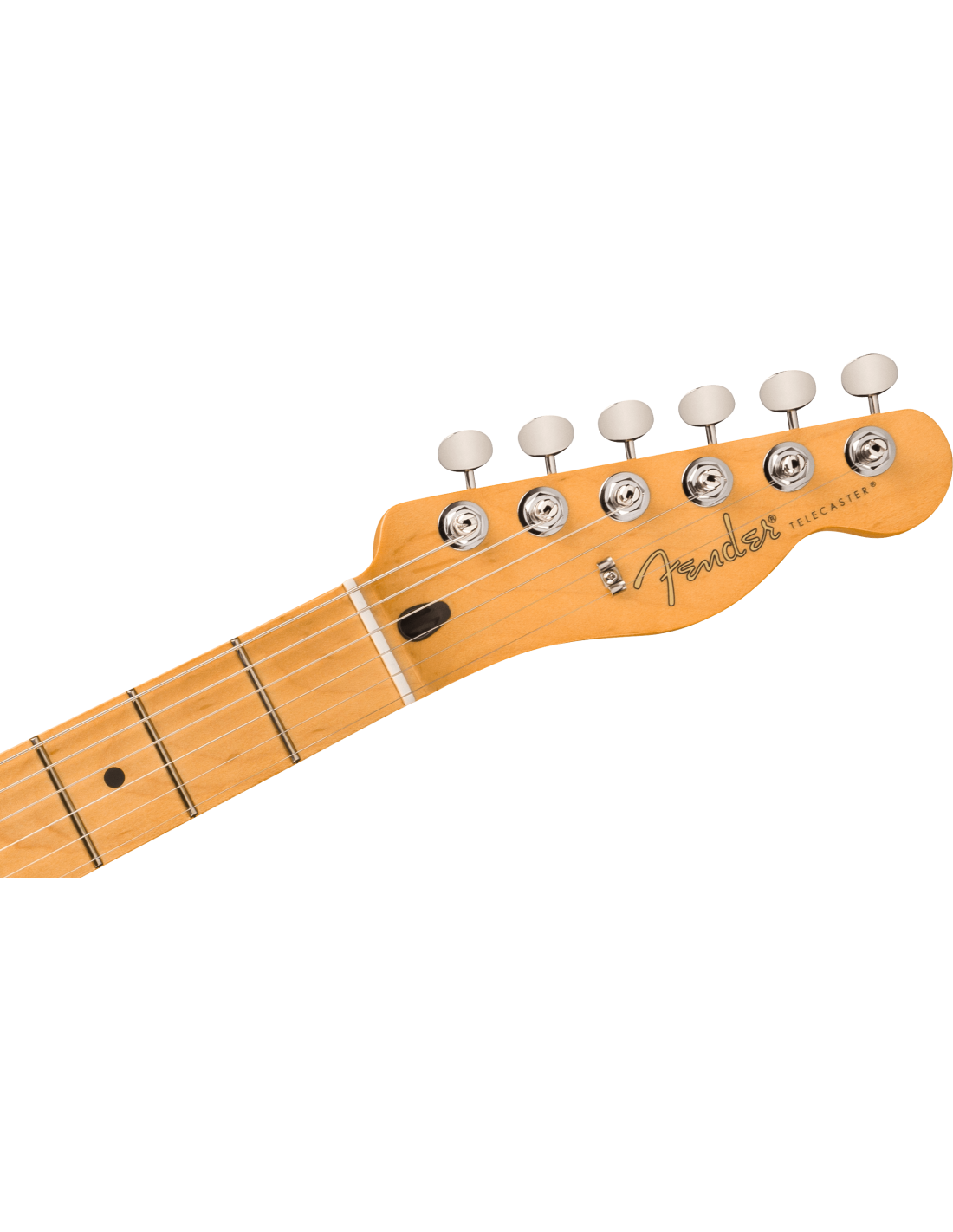 FENDER PLAYER II TELE MN BTB ist eine E-Gitarre mit solidem Korpus, Modell Player II Telecaster, mit einem hohlen Korpus aus Esche und einer glänzenden Polyester-Oberfläche, einem Hals aus Ahorn im modernen C-Profil, einem Ahorn-Griffbrett mit einem Radius von 9,5" und 22 Medium Jumbo-Bünden sowie Black Dots-Inlays, einem Sattel aus synthetischem Knochen, verchromter Hardware, einem Truss Rod Single Action Head Adjust, Fender ClassicGear-Stimmmechaniken mit Dual-Wing-Saitenhaltern, einem String-Through-Body Tele-Brücke mit 6 Blockstahl-Sätteln und einem 3-lagigen Schlagbrett in Schwarz/Weiß/Schwarz. Die Elektronik ist in SS-Konfiguration und besteht aus 2 Single-Coil Player Series Alnico V Tele-Pickups mit Master-Volume-Regler, Master-Tonregler und einem 3-Wege-Pickup-Wahlschalter.