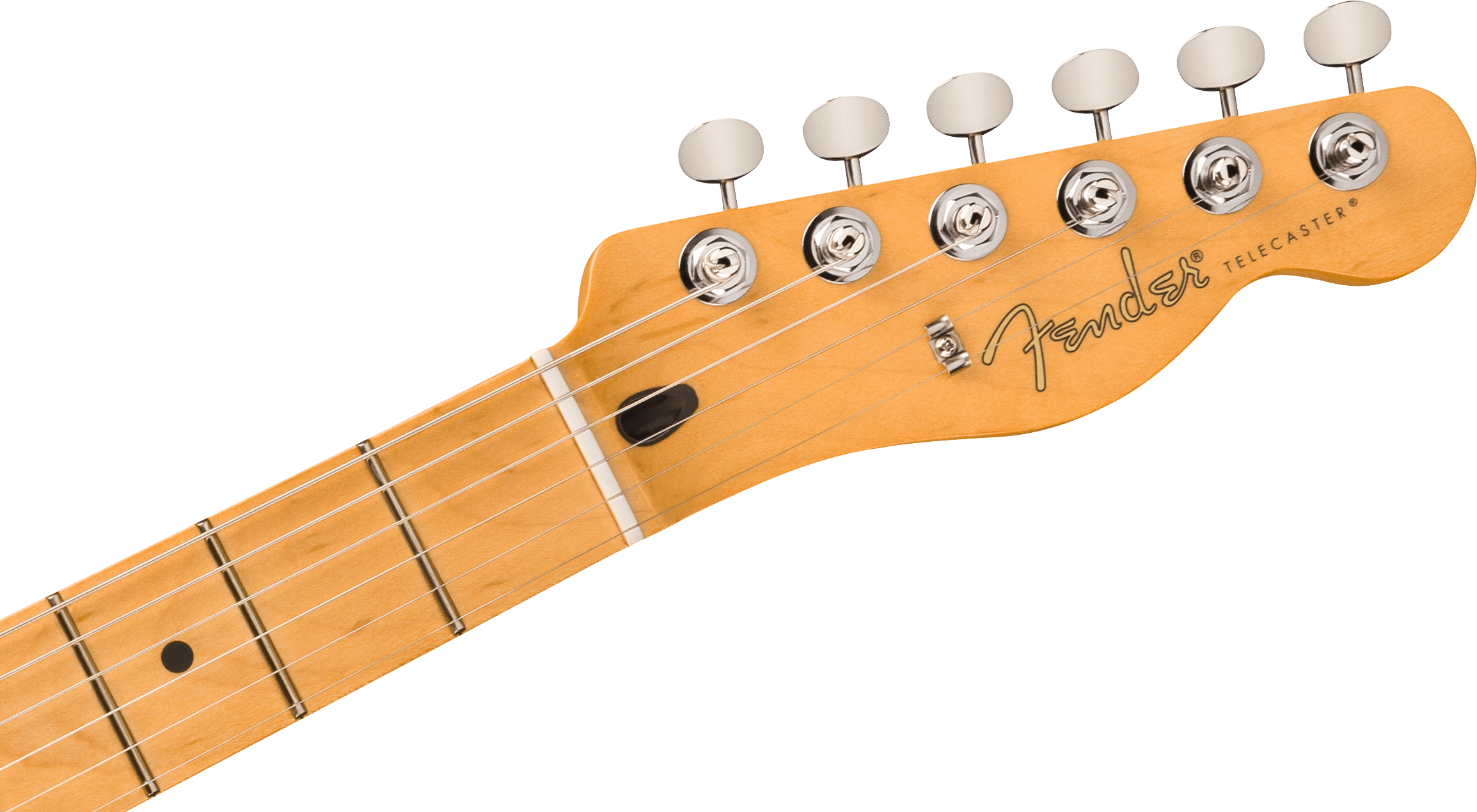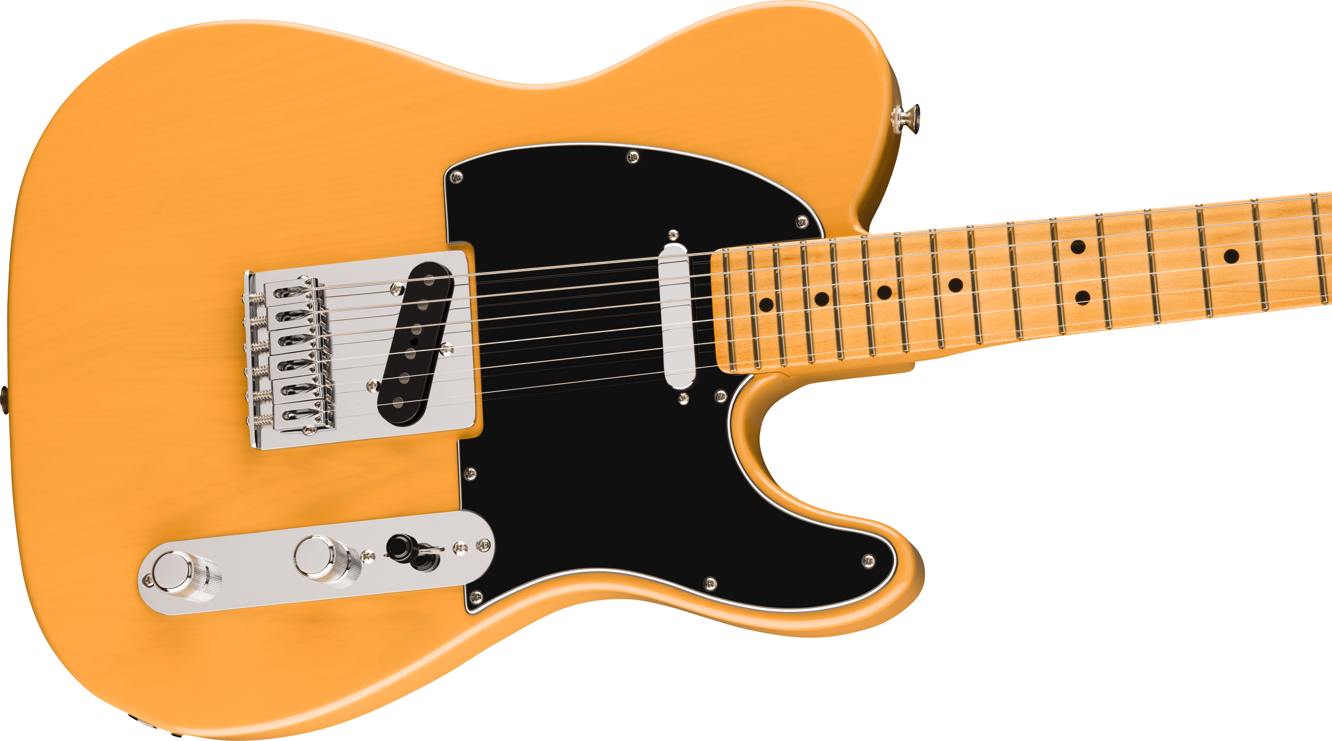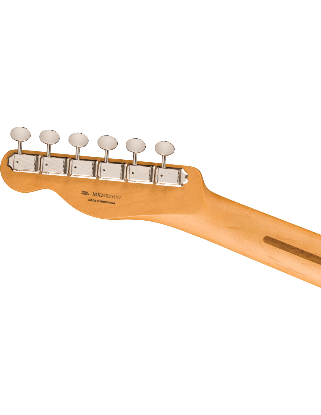 FENDER PLAYER II TELE MN BTB ist eine E-Gitarre mit solidem Korpus, Modell Player II Telecaster, mit einem hohlen Korpus aus Esche und einer glänzenden Polyester-Oberfläche, einem Hals aus Ahorn im modernen C-Profil, einem Ahorn-Griffbrett mit einem Radius von 9,5" und 22 Medium Jumbo-Bünden sowie Black Dots-Inlays, einem Sattel aus synthetischem Knochen, verchromter Hardware, einem Truss Rod Single Action Head Adjust, Fender ClassicGear-Stimmmechaniken mit Dual-Wing-Saitenhaltern, einem String-Through-Body Tele-Brücke mit 6 Blockstahl-Sätteln und einem 3-lagigen Schlagbrett in Schwarz/Weiß/Schwarz. Die Elektronik ist in SS-Konfiguration und besteht aus 2 Single-Coil Player Series Alnico V Tele-Pickups mit Master-Volume-Regler, Master-Tonregler und einem 3-Wege-Pickup-Wahlschalter.