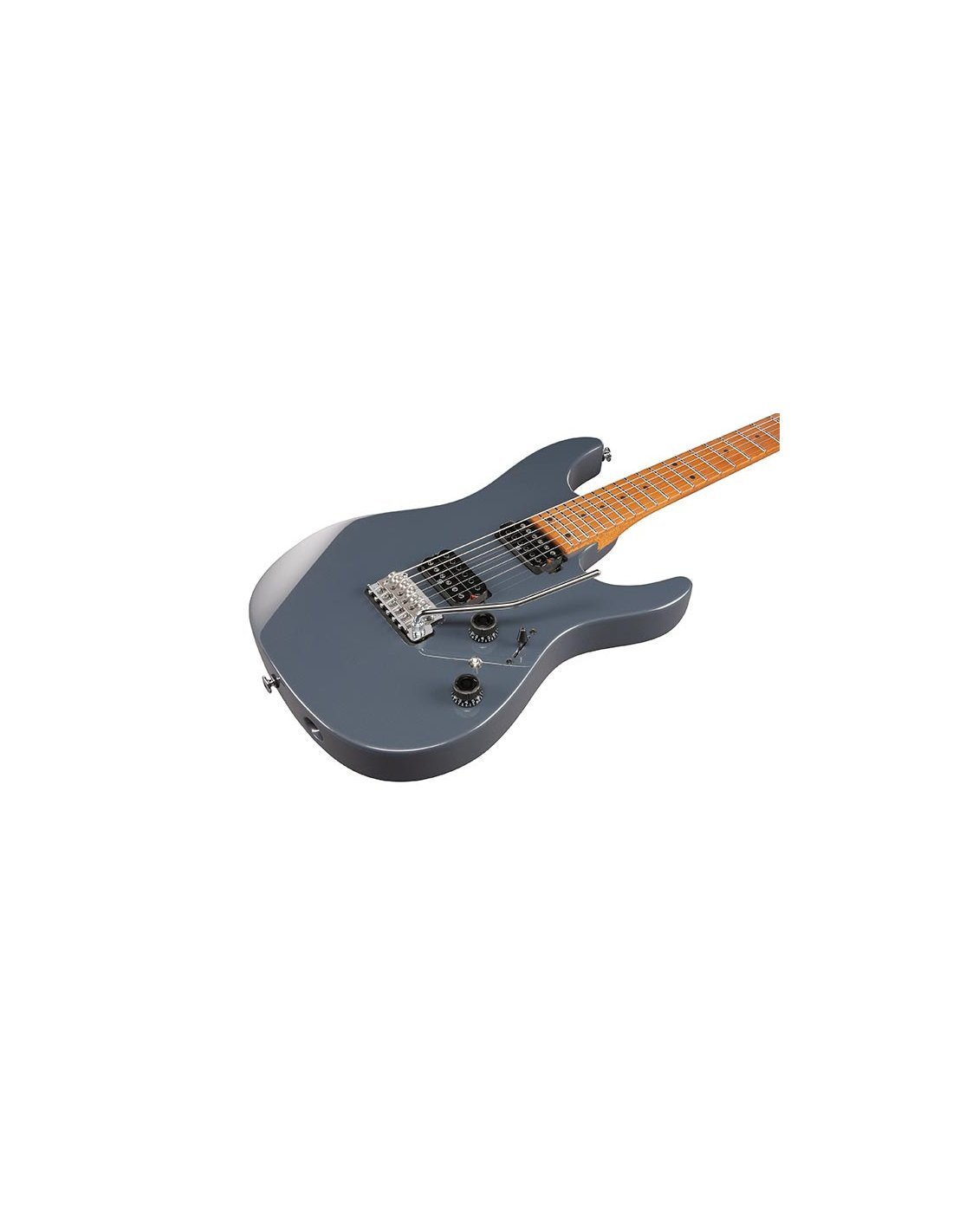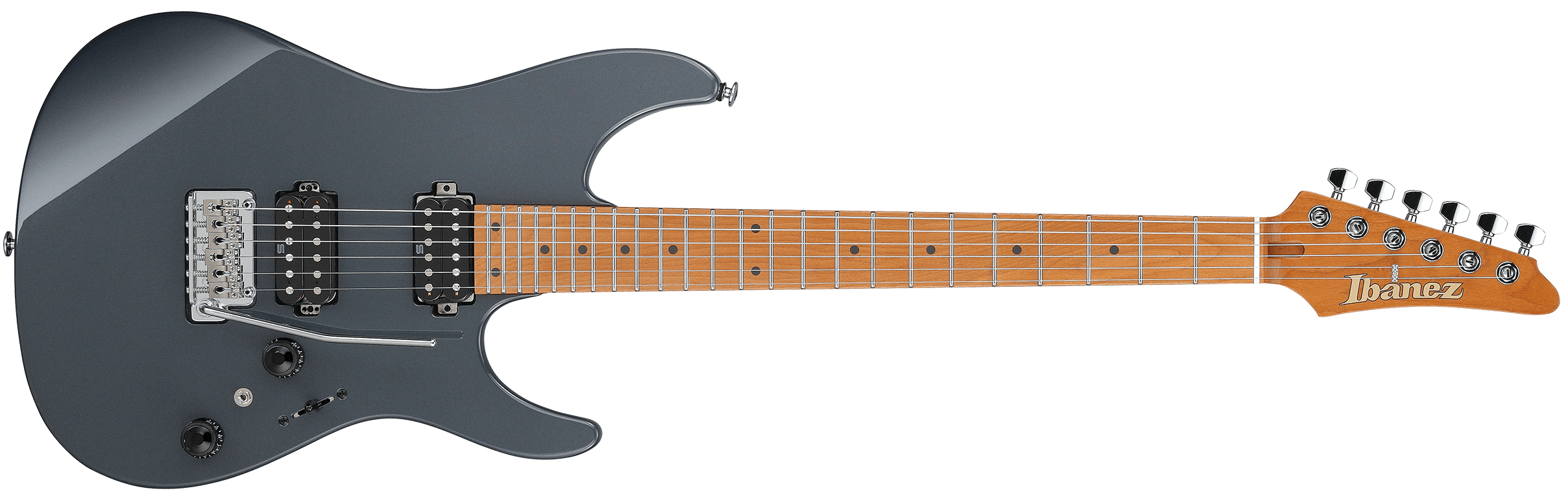 IBANEZ AZ2402-GRM ist eine Solid Body E-Gitarre im Strat-Style, Modell Ibanez AZ2402 Prestige Made in Japan, mit einem Korpus aus Erle, einem Hals aus geröstetem Ahorn S-TECH im AZ Oval C-Profil, einem Griffbrett aus geröstetem Ahorn S-TECH mit einem Radius von 12" und 24 Jumbo Edelstahlbünden mit Prestige Bundkante-Behandlung und Black Dot Inlays, seitlichen Luminlay-Markierungen, einem 42 mm breiten Sattel aus Knochen, Chrom-Hardware, Gotoh Magnum Lock Mechaniken mit H.A.P. und einem Gotoh T1802 Tremolo. Die Elektronik mit HH-Konfiguration besteht aus 2 passiven/alnico Seymour Duncan Hyperion Humbuckern am Steg und am Hals mit Master Volume, Master Tone, dyna-MIX9 Switching-System mit Alter Switch und einem 5-Wege Pickup-Wahlschalter. Inklusive Ibanez Hardshell Case