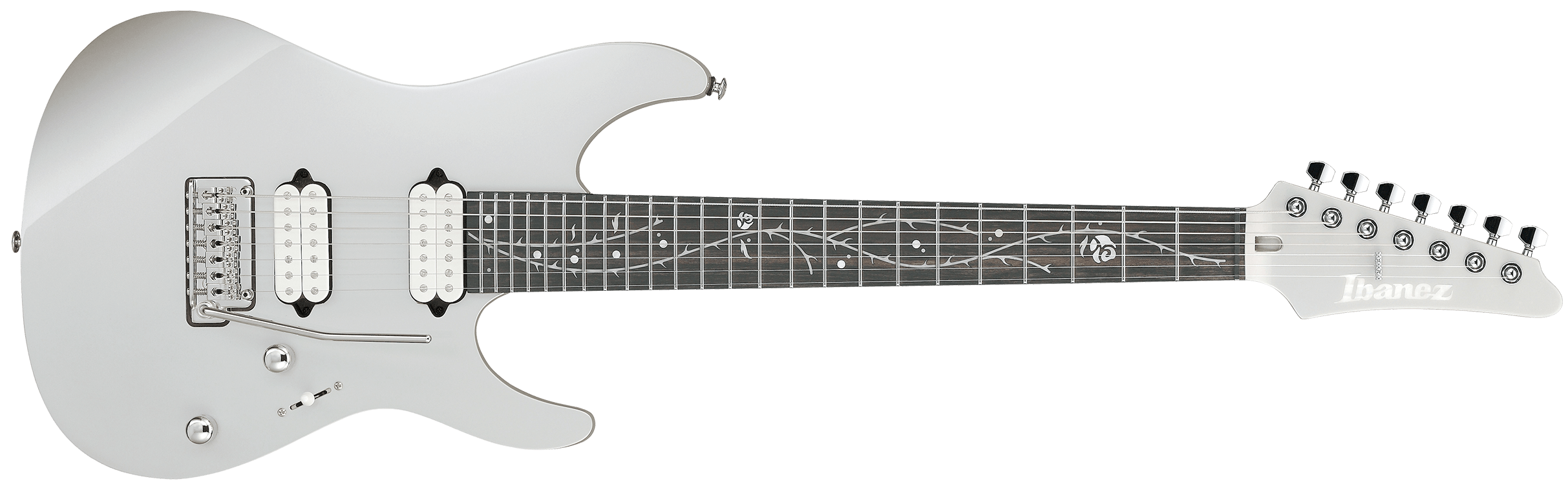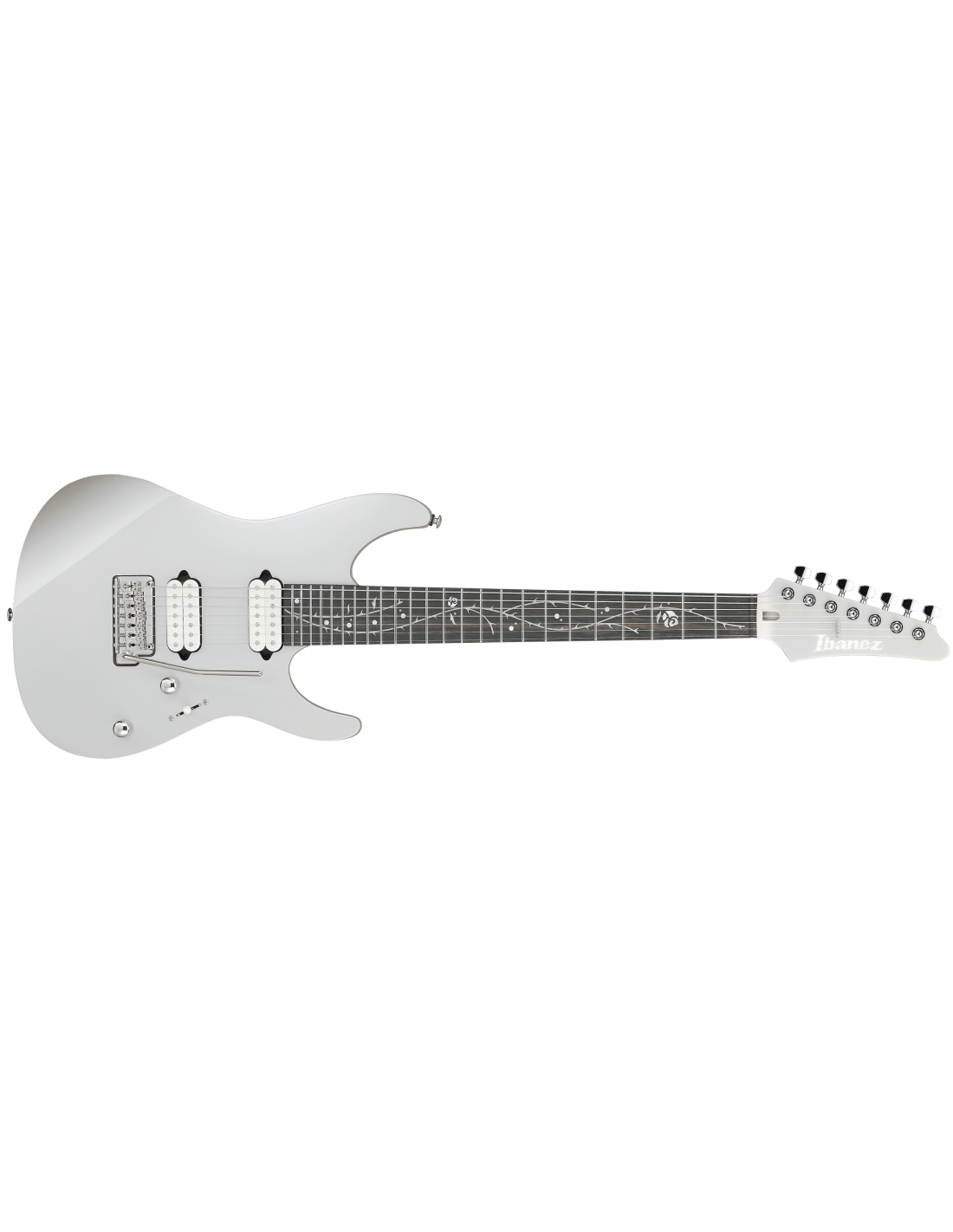 IBANEZ TOD70 TIM HENSON ist eine 7-saitige Solid-Body-E-Gitarre, Modell Ibanez Signature Tim Henson TOD70, mit einem Korpus aus amerikanischem Erle, einem AZ7 Oval C Hals aus geröstetem Ahorn, einem 12" Radius Ebenholzgriffbrett mit 24 Jumbo-Edelstahlbünden und Tree of Death Einlagen mit lumineszierenden Seitenmarkierungen, einem 47 mm Graph Tech Sattel, Chrom-Hardware, Gotoh MG-T Locking Mechaniken, und einem Gotoh T1572S Tremolo. Die HH-Konfiguration der Elektronik besteht aus 2 aktiven Fishman Fluence Tim Henson Signature Series 7 Active/Alnico Humbuckern am Steg und am Hals, mit Master Volume, Master Tone mit Push/Pull Fishman Fluence Voicing Switch zur Auswahl der Pickup-Stimmen und einem 5-Wege Pickup-Wahlschalter. Inklusive Ibanez Gig Bag