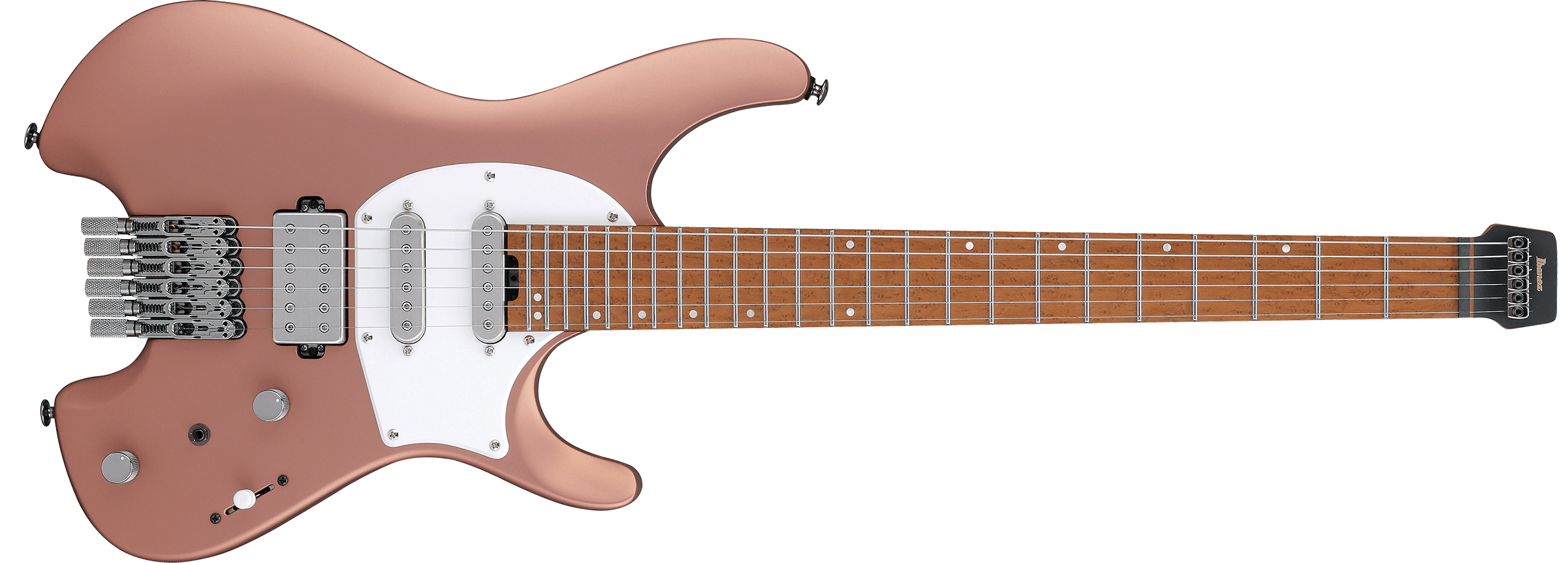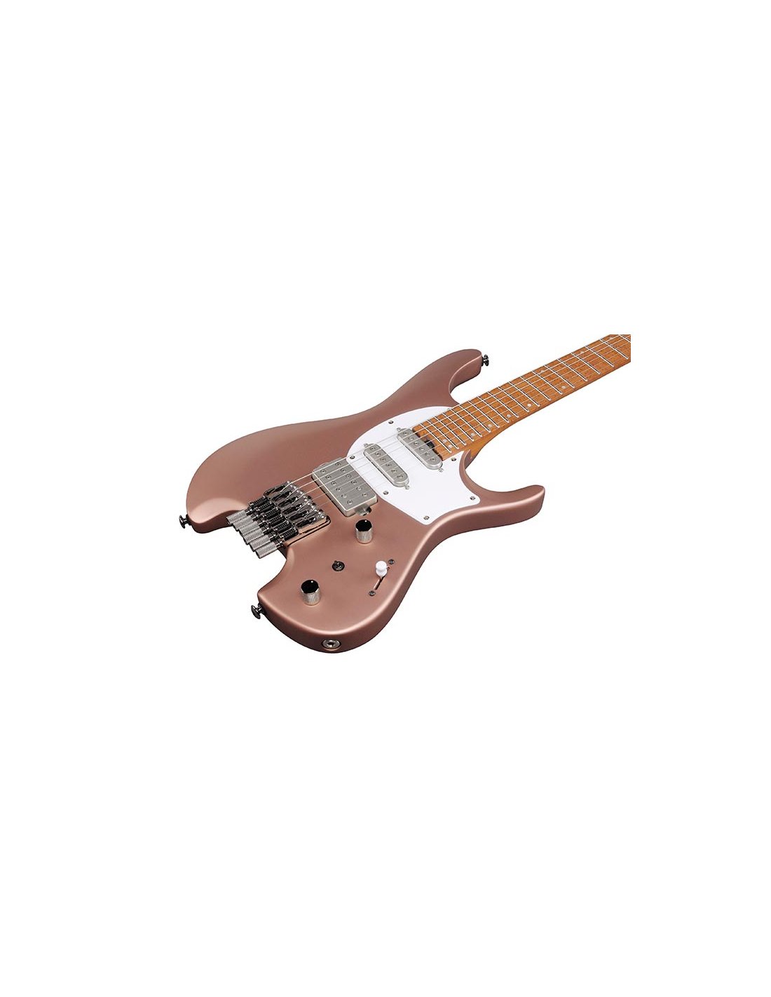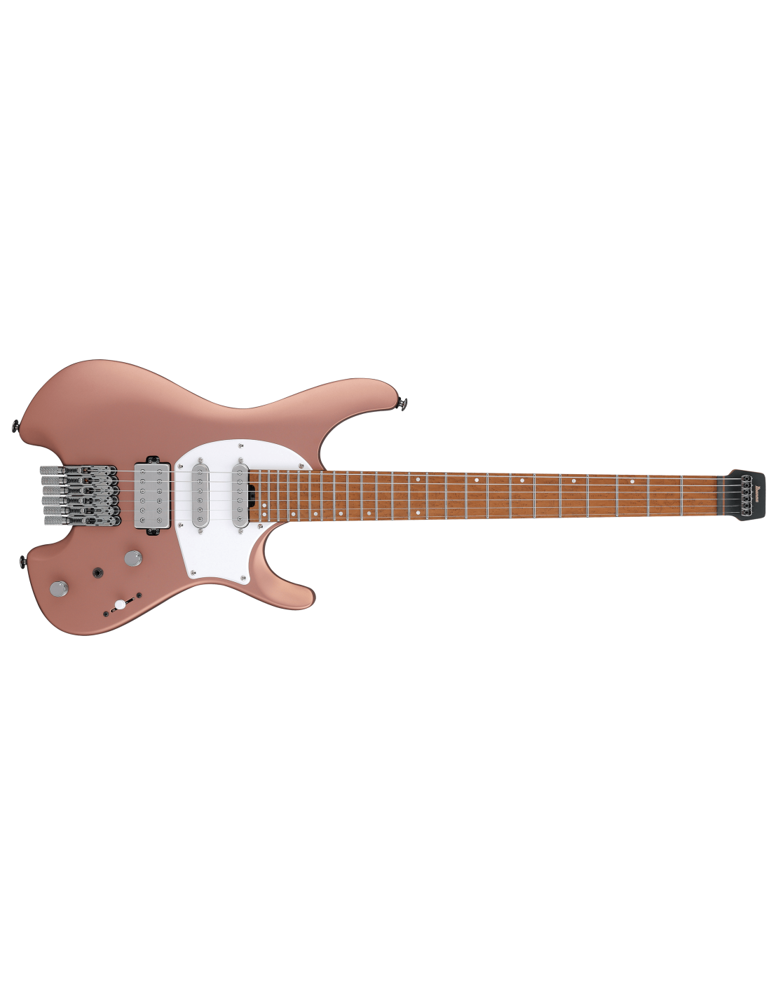 IBANEZ Q54W-CMM ist eine Headless Solid Body E-Gitarre, Serie Ibanez Q Modell Ibanez Q54W, mit ergonomischem Nyatoh-Korpus, Wizard C-Hals aus 3 Teilen geröstetem Ahorn/Bubinga, gerösteter Birdseye-Ahorn-Griffbrett mit 12" Radius und 24 Jumbo-Edelstahl-Bünden sowie Mother of Pearl Step off-set Dot Einlagen mit lumineszenten Seitenpunkten, Sattel von 42mm, Ibanez Custom String Lock, Cosmo Black Hardware und Ibanez Mono-Tune Bridge. Die Elektronik mit HSS-Konfiguration besteht aus 1 Humbucker Q58 Passive/Ceramic am Steg und 2 Single-Coil R1 Passive/Ceramic in der Mitte und am Hals, mit Master Volume, Master Tone, einem 2-Wege Alter Switch des dyna-MIX9 Switching-Systems und einem 5-Wege Pickup-Wahlschalter. Inklusive Ibanez Gig Bag.