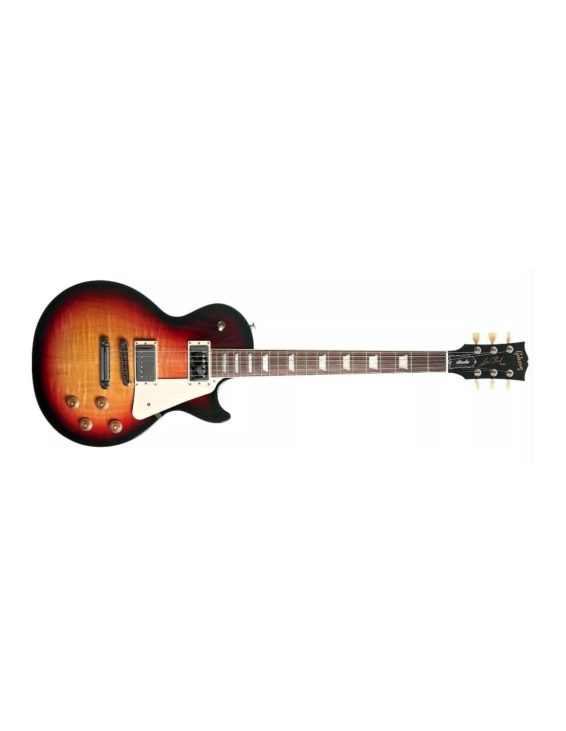 GIBSON LES PAUL STUDIO FIGURED TRIBURST ist eine E-Gitarre im Solid Body-Design, Modell Gibson Les Paul Studio Figured Top, mit einem Korpus aus Mahagoni Ultra Modern weight-relieved und einer Decke aus AA-figuriertem Ahorn, einem Mahagonihals mit SlimTaper-Profil, einem Griffbrett aus indischem Palisander mit 12"-Radius, 22 Medium-Jumbo-Bünden und Acrylic Trapezoid-Inlays, einem Graph Tech-Sattel von 43 mm, verchromtem Hardware, Vintage Deluxe-Mechaniken mit Keystone-Stimmmechaniken und einem Aluminium Nashville Tune-O-Matic-Brücke mit Aluminium Stop Bar. Die Elektronik in HH-Konfiguration besteht aus 2 Gibson Burstbucker Pro Humbuckern, mit 2 Master Volume-Reglern mit Push/Pull, 2 Master Tone-Reglern und einem 3-Wege-Pickup-Wahlschalter. Inklusive Gibson Soft Shell Case, Gibson USA-Gurt und Gibson Zubehörkit.
