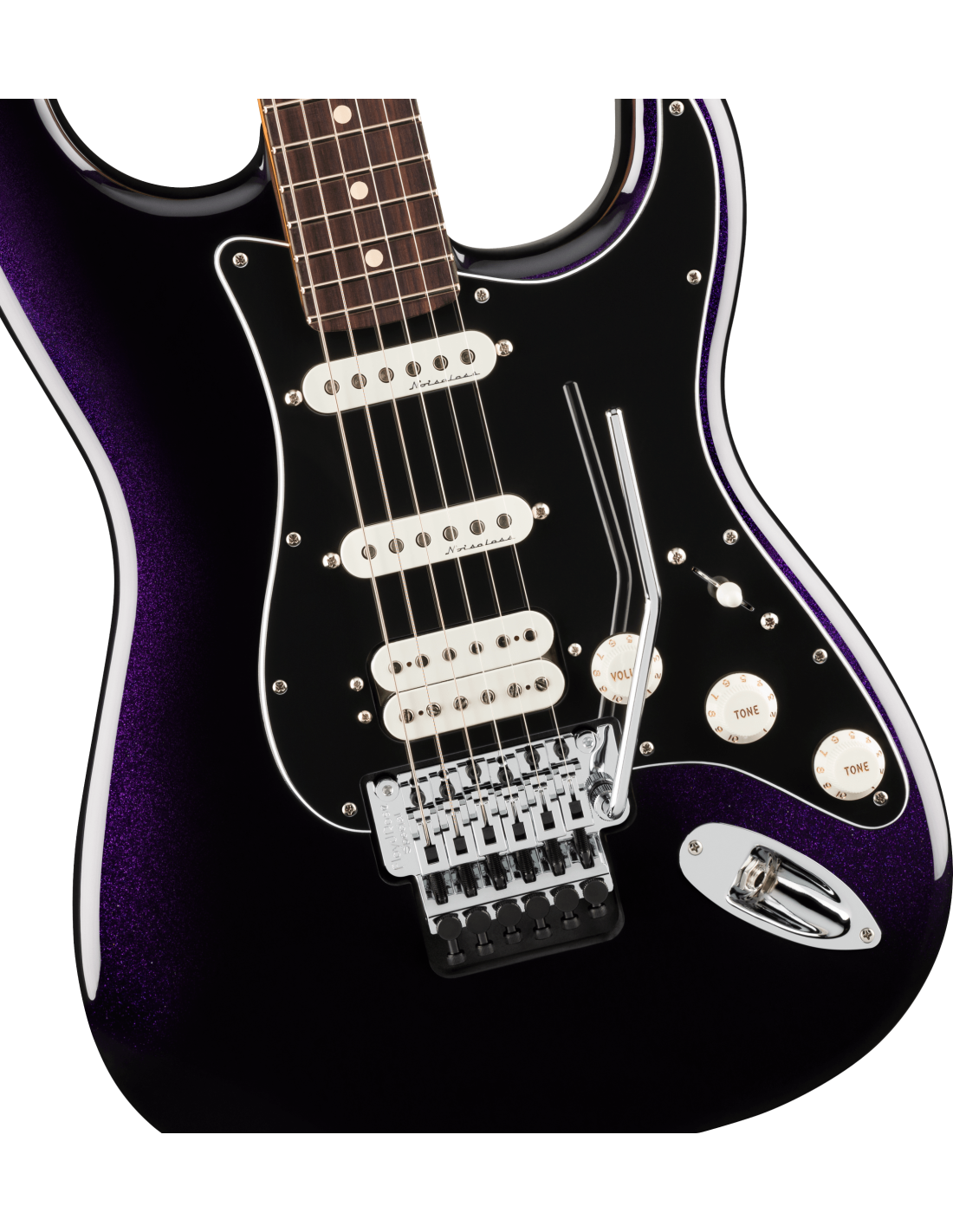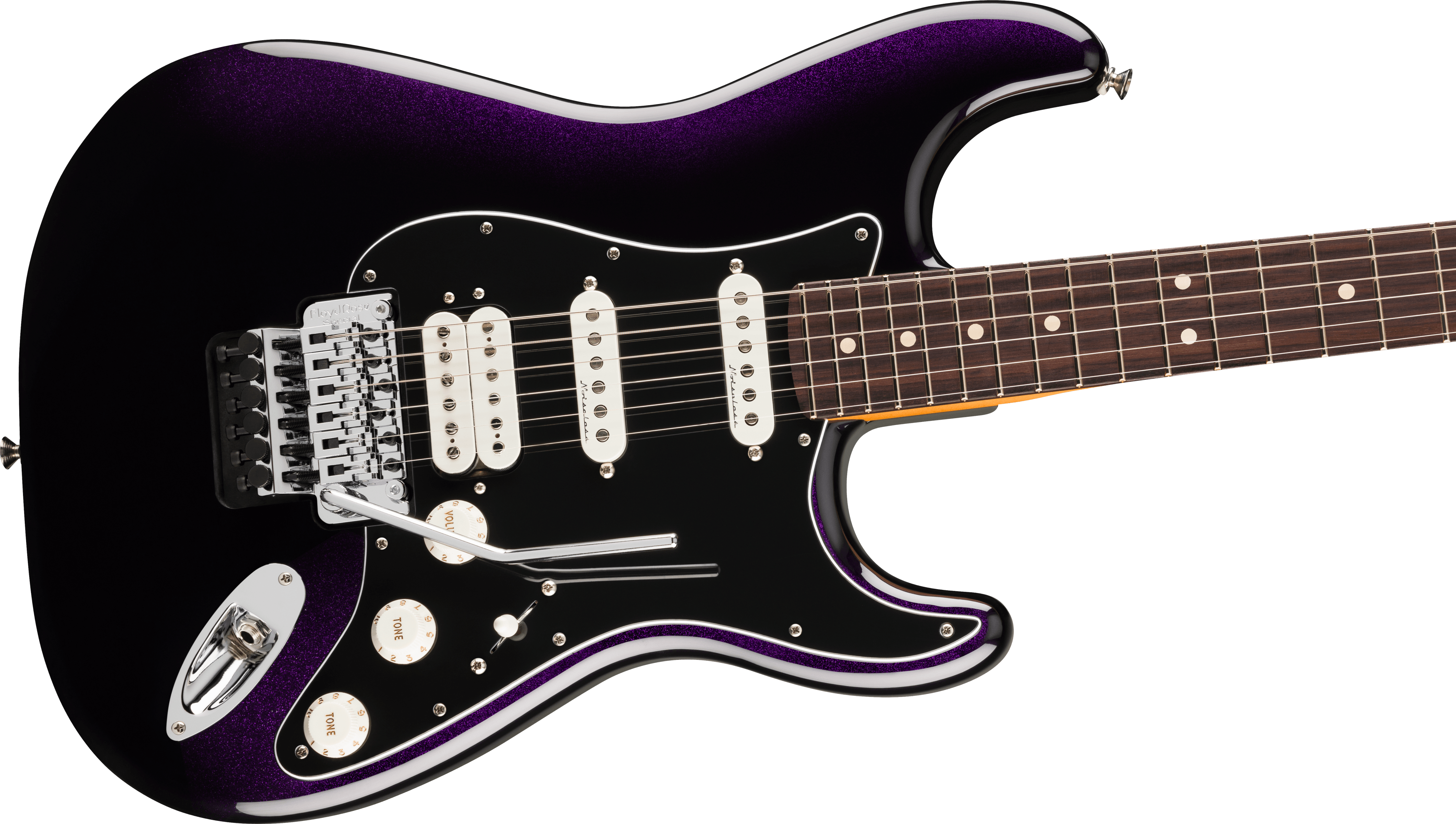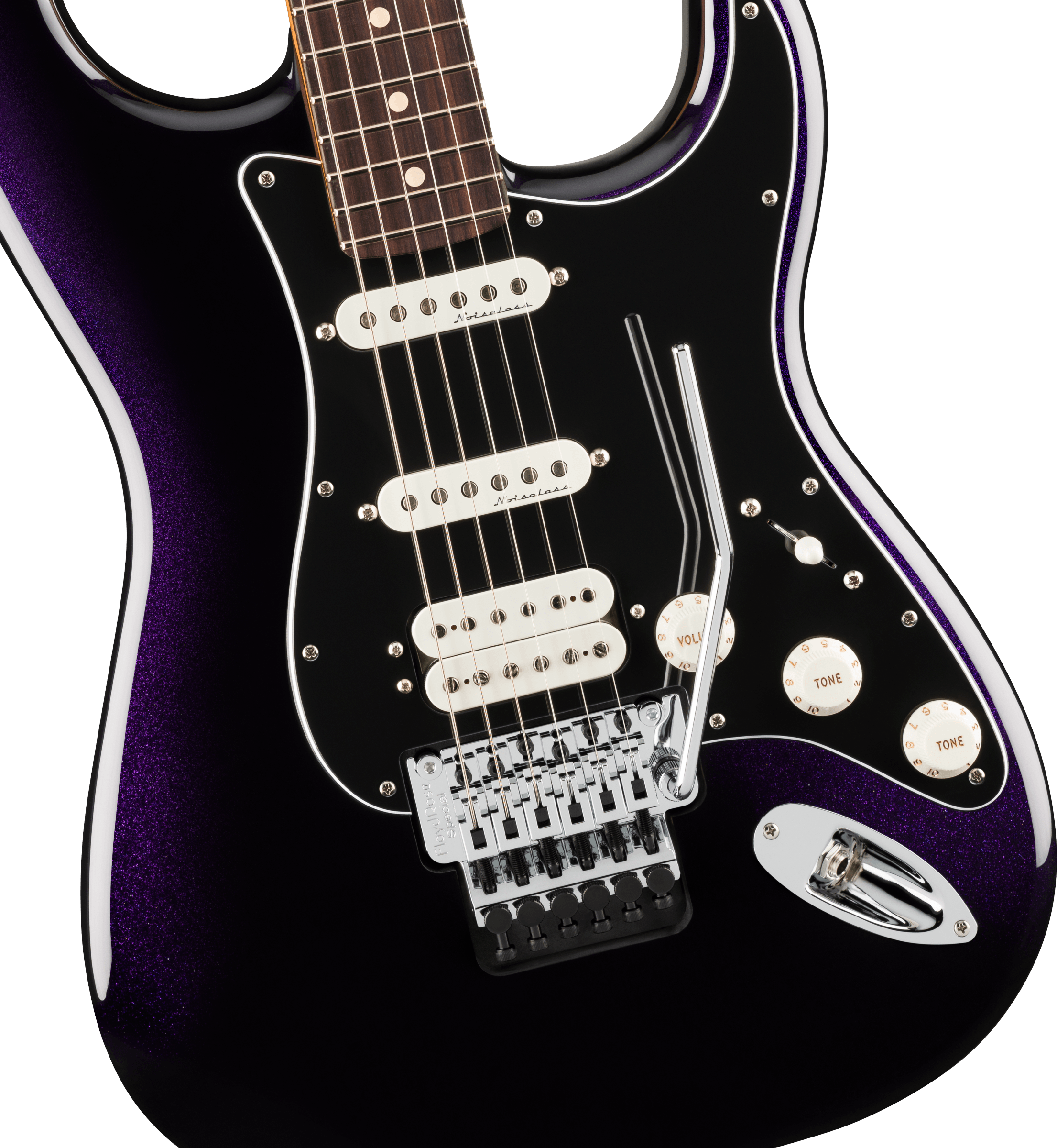 FENDER PLAYER II MOD STRAT HSS FLOYD ROSE RW DUSK ist eine E-Gitarre mit solidem Korpus, Modell Player II Modified Stratocaster HSS Floyd Rose, mit Korpus aus Erle in Hochglanz-Polyester-Finish, Ahornhals mit modernem "C"-Profil, Palisander-Griffbrett mit 12"-Radius und abgerundeten Kanten, 22 Medium Jumbo-Bünde und White Dot-Inlays, Truss Rod Single Action Head Adjust, Floyd Rose R3 Locking Sattel, Nickel/Chrom-Hardware, Fender Standard geschlossene Gussmechaniken mit Modern Dual-Wing-String Tree und Floyd Rose Special Double-Locking Tremolo. Die Elektronik in HSS-Konfiguration besteht aus 1 Humbucker Player II Modified am Steg und 2 Single-Coil Player II Noiseless Strat in der Mitte und am Hals, mit Master Volume mit Treble Bleed, 2 Tone-Reglern, 5-Wege-Pickup-Wahlschalter und Push/Pull am Tone 2 für das Splitting des Humbuckers. Inklusive Fender Deluxe Gig Bag.