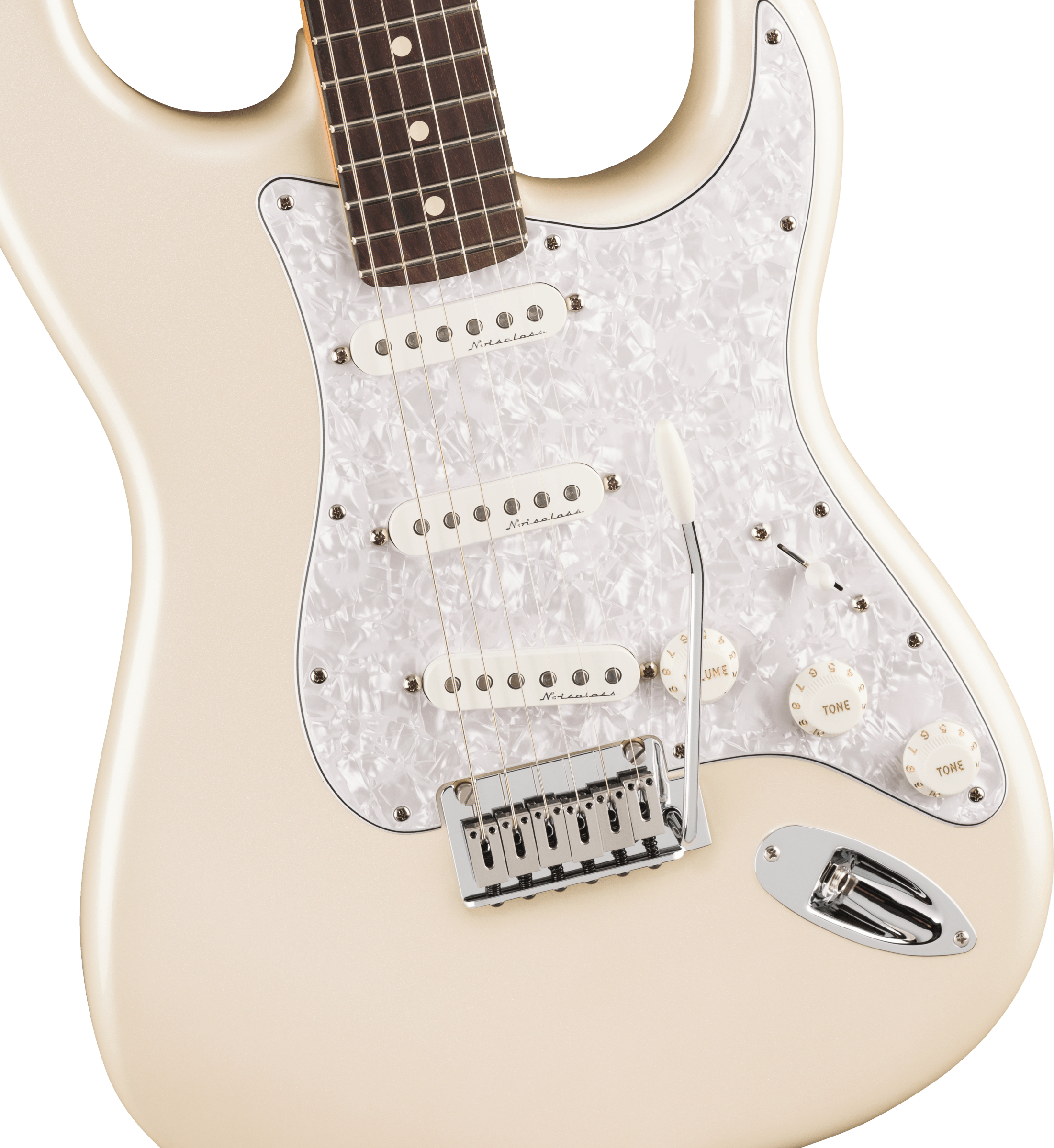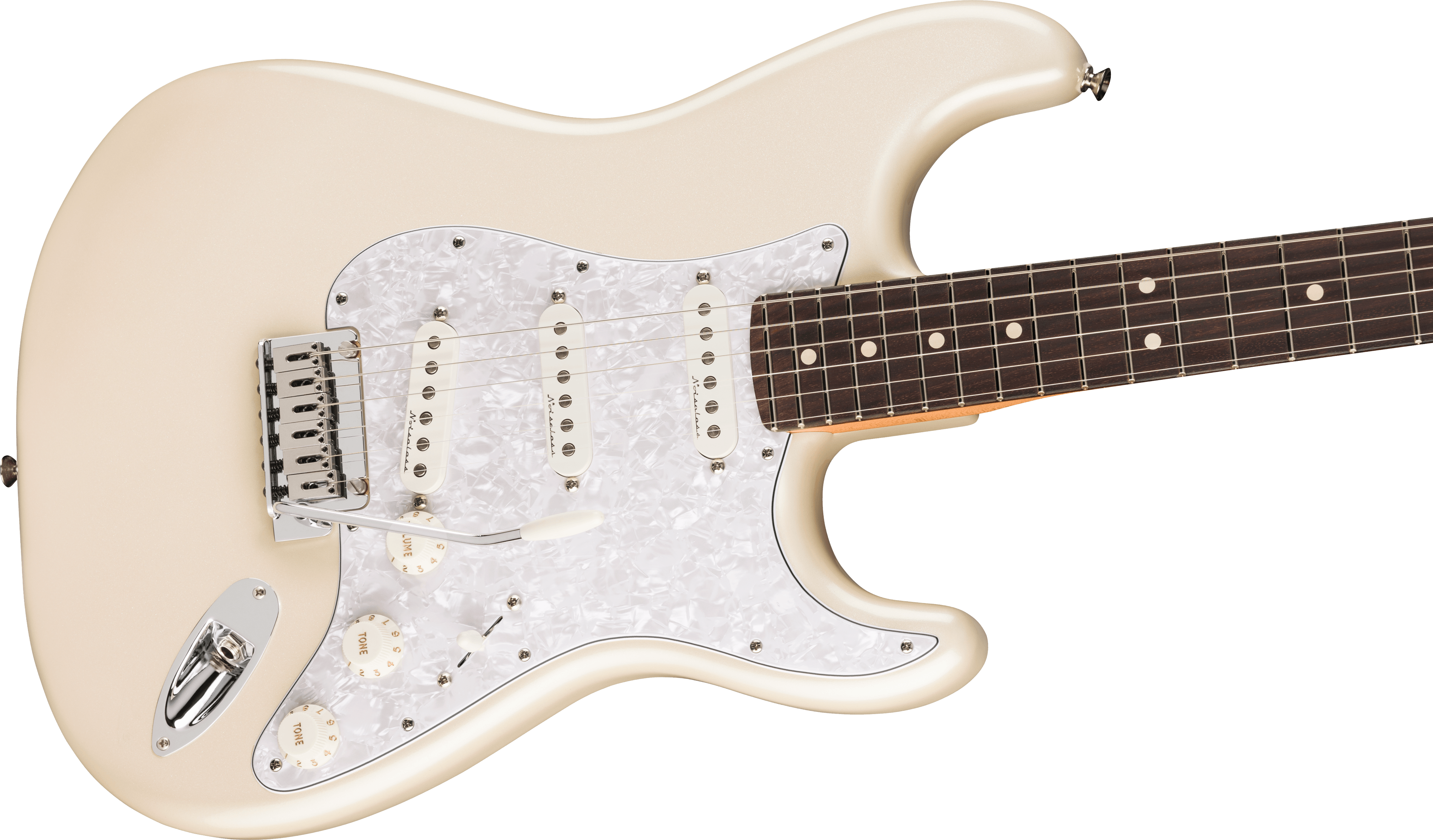 FENDER PLAYER II MOD STRAT RW OLP ist eine E-Gitarre mit solidem Korpus, Modell Player II Modified Stratocaster, mit Korpus aus Erle in Hochglanz-Polyester-Finish, Ahornhals mit Modern "C"-Profil, Palisander-Griffbrett mit 9,5" Radius und abgerundeten Kanten, 22 Medium Jumbo Bünde und White Dot Einlagen, Truss Rod Single Action Kopfverstellung, Sattel aus TUSQ, Nickel/Chrom-Hardware, geschlossene Fender Deluxe Mechaniken mit Modern Dual-Wing Saitenhalter und synchronisiertem Tremolo-Bridge, das an 2 Punkten mit Block-Sattel aus Stahl und abgerundetem Tremolo-Inertialsperre befestigt ist. Die Elektronik mit SSS-Konfiguration besteht aus 3 Player II Noiseless Strat Single-Coil-Pickups, mit Master Volume mit Treble Bleed, 2 Tone-Reglern, 5-stufigem Pickup-Wahlschalter und Push/Pull am Tone 2 zur Hinzufügung des Hals-Pickups in den Positionen 1 und 2 des Schalters. Inklusive Fender Deluxe Gig Bag.