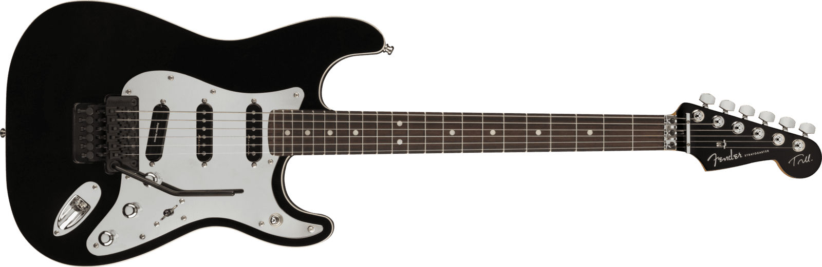 Chitarra Elettrica Fender Tom Morello Stratocaster RW BLK colore BLACK. La Fender Tom Morello Stratocaster RW BLK è una chitarra elettrica a 6 corde progettata in collaborazione con il chitarrista Tom Morello. Le caratteristiche tecniche includono corpo in ontano, manico in acero con profilo Modern "C", tastiera in palissandro, compound radius 9.5”-14", 22 tasti medium jumbo, pickup Vintage Noiseless Single-Coil Strat (neck/middle) e Seymour Duncan Hot Rails Strat SHR-1B (bridge), ponte Floyd Rose FRT-O2000 Double-Locking Tremolo (Recessed).