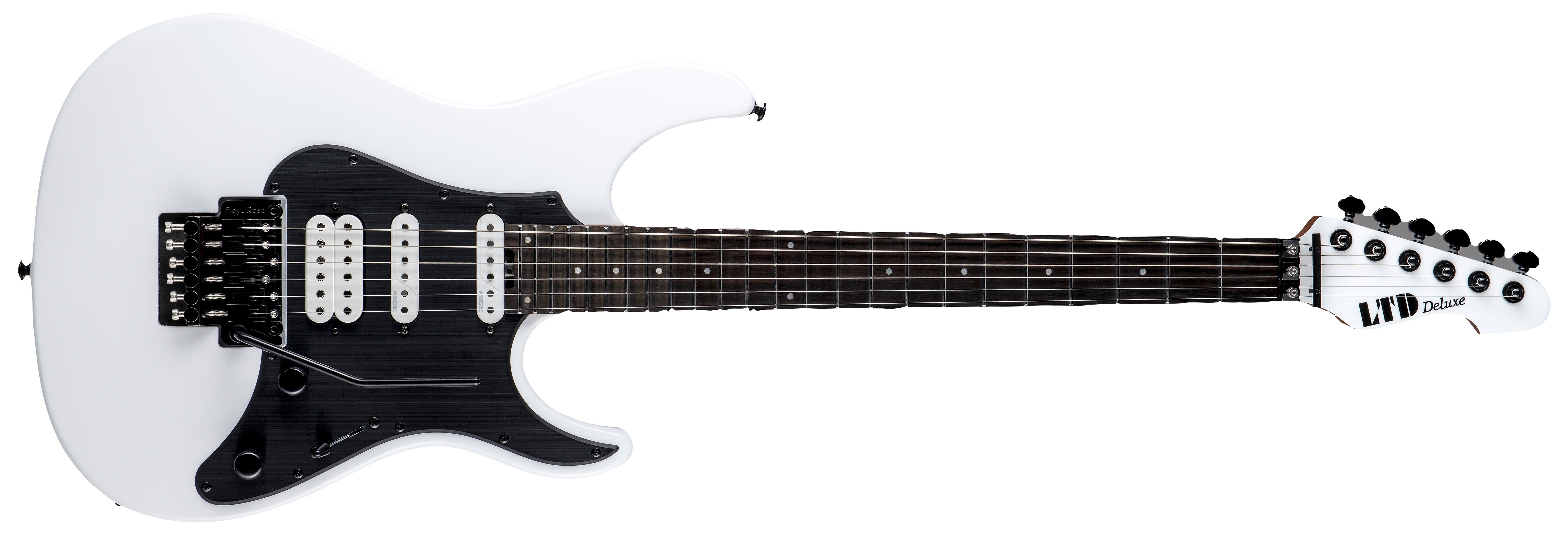 Bolt-on Konstruktion - Maßstab 25,5” - Korpus aus Erle - 3-teiliges Ahorn-Hals mit „Thin U“-Profil - Griffbrett aus Macassar-Ebenholz mit Compound-Radius 10''-16'' und Skallopierung zwischen dem 17. und 24. Bund - 22 extra Jumbo-Bünde aus Stahl - 42 mm Locking-Sattel - Schwarze Hardware - Floyd Rose 1000 Tremolo - Grover Mechaniken - Fishman Fluence Classic HSS Tonabnehmer - D'Addario XL120 Saiten (.009/.011/.016/.024/.032/.042)