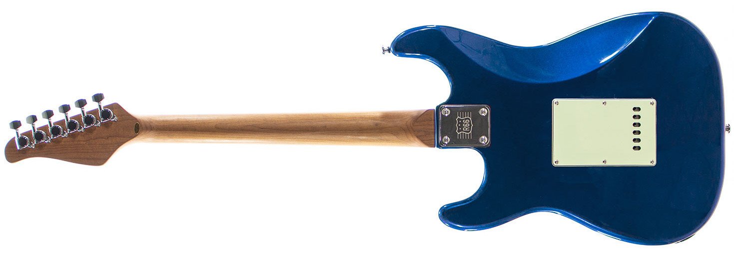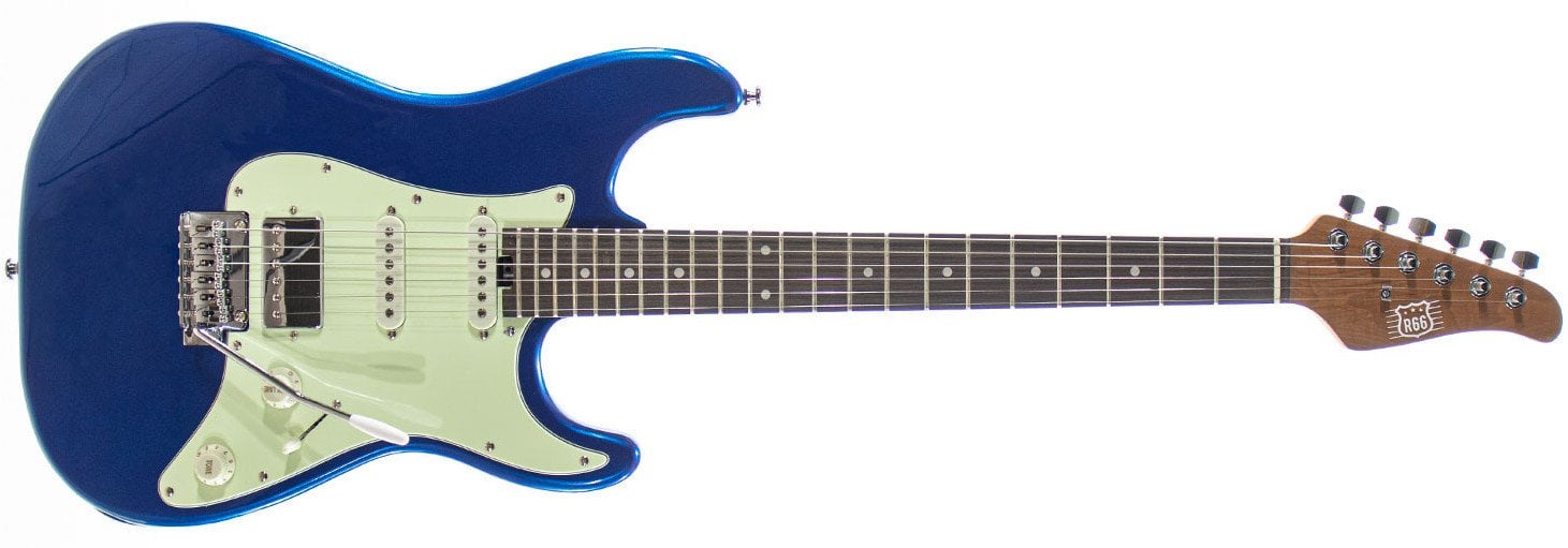 R66 HORIZON TRADITIONAL SANTA MONICA BLUE ist eine Solid-Body-E-Gitarre im Strat-Style, Modell Schecter R66 Horizon Traditional Santa Monica mit einem Korpus aus Erle, einem gerösteten Ahornhals im Standard-C-Profil, einem Ebenholzgriffbrett mit 12" Radius, 22 Jumbo-Bünden und White Dots Einlagen, einem 42mm Knochen-Sattel, Chrom-Hardware, R66 Horizon selbstsichernden Mechaniken und einem R66 Horizon 2-Punkt Tremolo. Die Elektronik in HSS-Konfiguration besteht aus einem R66 Horizon Humbucker am Steg und zwei R66 Horizon Single-Coils in der Mitte und am Hals mit Master Volume, Master Tone mit Push/Pull und einem 5-Wege Pickup-Wahlschalter. Inklusive gepolsterter schwarzer Gigbag mit 15mm und vorderer Tasche