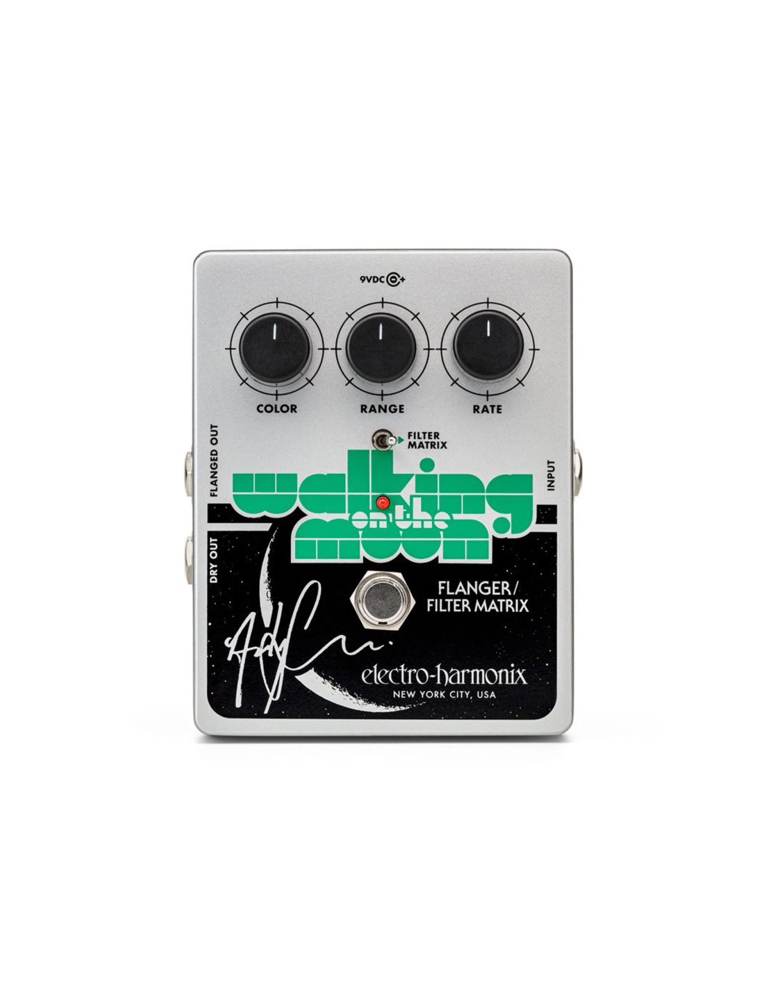 ELECTRO HARMONIX ANDY SUMMERS WALKING ON THE MOON ist ein Flanger/Filter-Pedal in der Andy Summers Signature-Ausführung, basierend auf dem Flanger EHX Electric Mistress. Die technischen Merkmale umfassen Steuerungen zur Modellierung des Effekts: Color, Range, Rate und einen Schalter zum Deaktivieren des LFO-Filters, der eine feste Wiedergabe des Effekts ohne Klangschwankungen ermöglicht. Es verfügt über einen Dry-Signal-Ausgang, der es ermöglicht, das trockene Signal vom bearbeiteten Ausgang zu trennen.