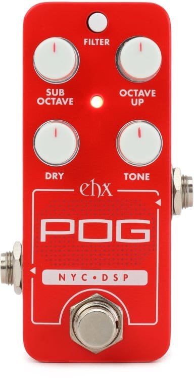 ELECTRO HARMONIX PICO POG ist ein mini polyphoner Octaver-Pedal mit Steuerungen für den Sub-Octave-, Octave-Up-, Dry-Signal- und Tone-Level mit 3 wählbaren Modi dank der Filtertaste. Die Tone-Steuerung hellt den Klang auf, wenn sie im Uhrzeigersinn gedreht wird, durch einen Tiefpassfilter, und macht ihn dunkler, wenn sie gegen den Uhrzeigersinn gedreht wird, durch einen Hochpassfilter, und wendet die Tilt-EQ auf alle Ausgänge an. Inklusive 9V-Netzteil.