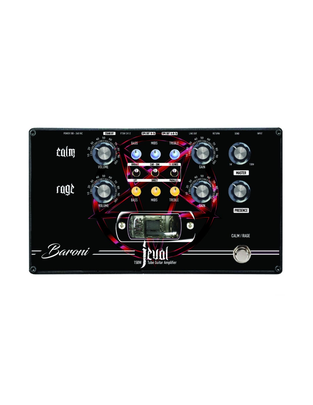 Zwei Kanäle Calm/rage - 150W RMS bei 4Ω (75W bei 8Ω/40W bei 16Ω) - Hybrides Vorverstärkerstadium mit 1-12AU7 - Unabhängiger Drei-Band-Equalizer pro Kanal - Master-Lautstärke und Master-Präsenz - Integrierter Effektloop Serie/Parallel - Line Out-Ausgang mit Cabinet-Simulator - Anschluss für Fernbedienung zum Kanalwechsel