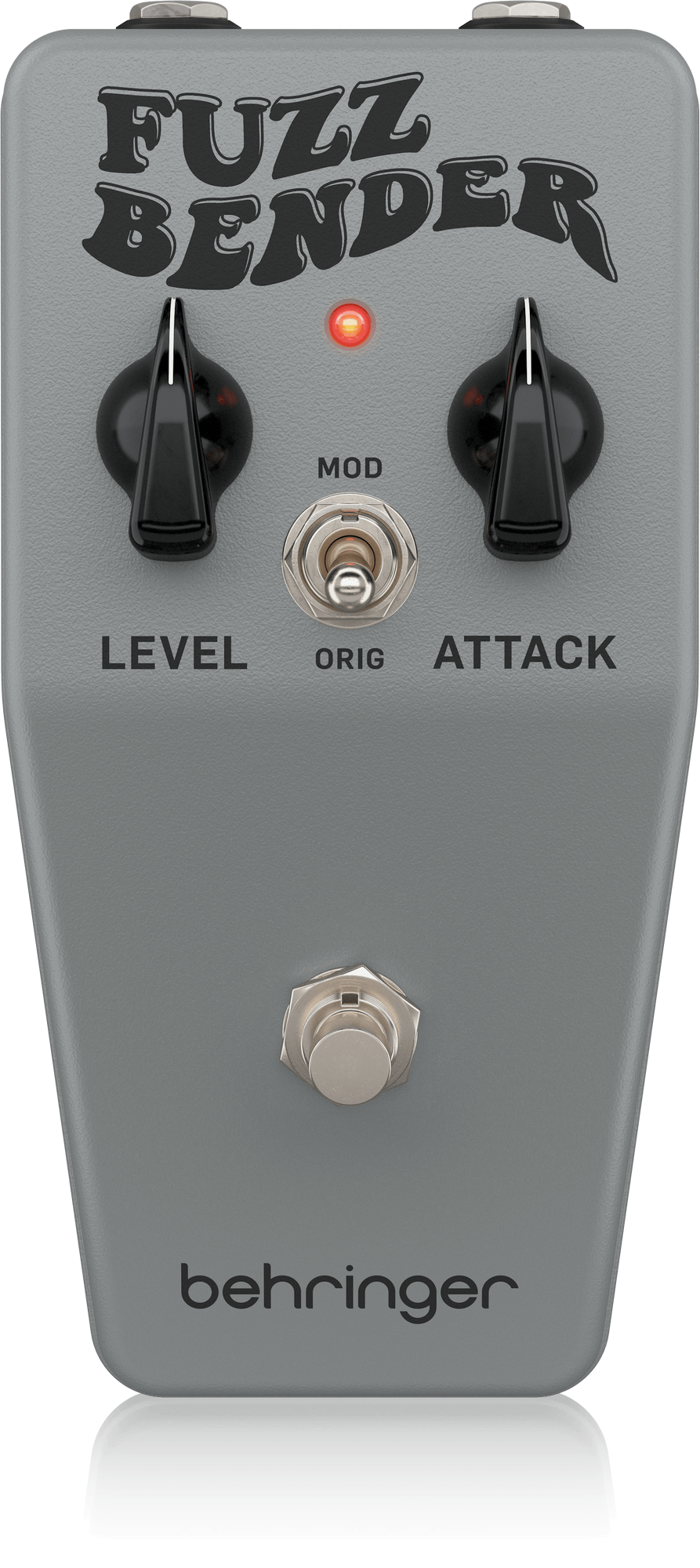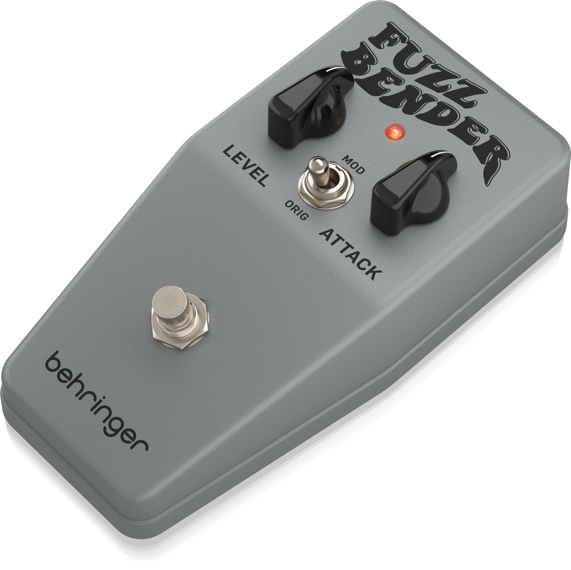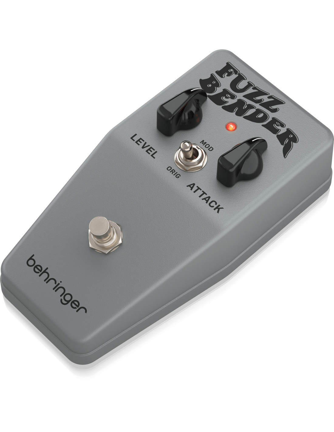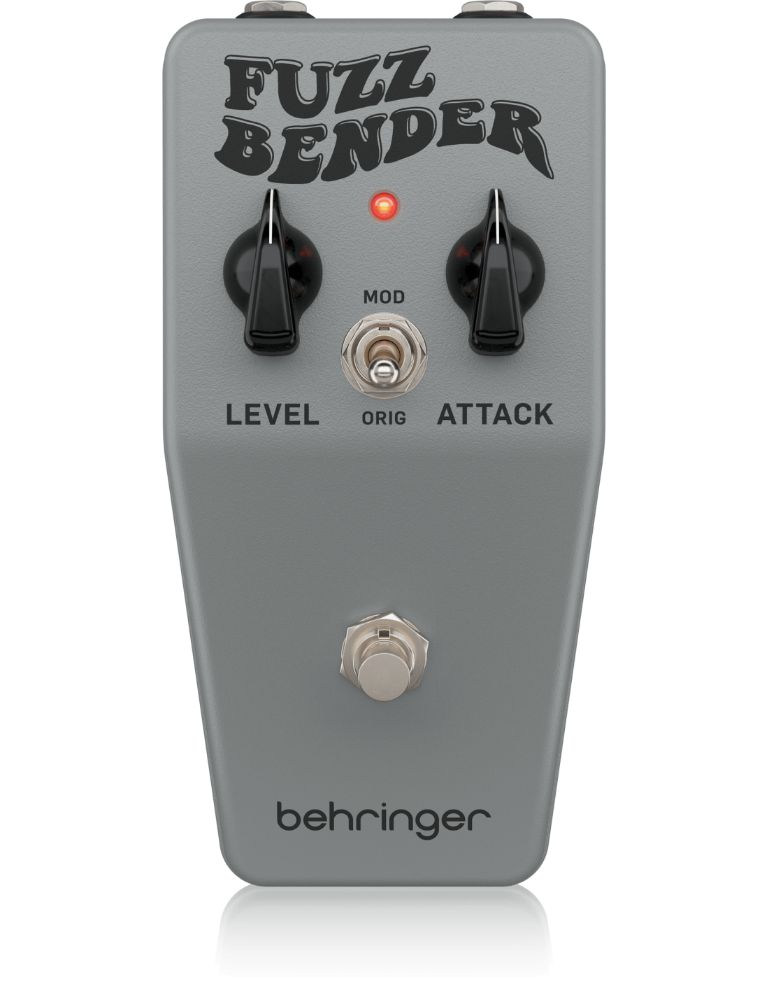 BEHRINGER FUZZ BENDER ist ein analoges Fuzz-Pedal für Gitarre, inspiriert von den Vintage-Fuzz-Effekten der 60er Jahre. Zu den technischen Merkmalen gehören die Regler Level und Attack, ein Mod-Schalter, der 2 verschiedene Fuzz-Voicings aktiviert/deaktiviert, True Bypass und der Betrieb über ein Standard-Netzteil 9V DC.