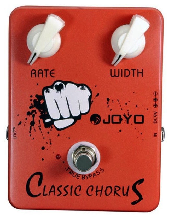 Pedale für Gitarre Joyo JF05 Classic Chorus. Der Joyo JF05 Classic Chorus ist ein True-Bypass-Gitarrenchorus. Er ist mit den Reglern Rate und Width ausgestattet.
