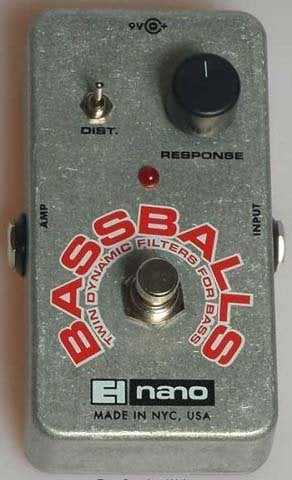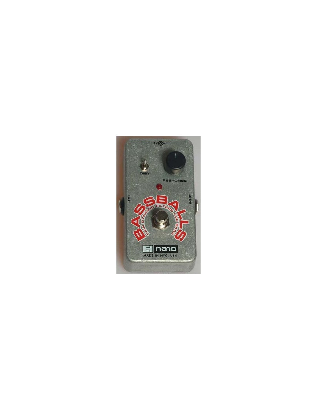 Pedale für Bass Electro Harmonix Bass Balls Nano. Das Electro Harmonix Bass Balls Nano ist ein zweikanaliger dynamischer Hüllkurvenfilter-Pedal für Bass mit True Bypass. Es verfügt über die Steuerung Response und den Schalter Distortion.