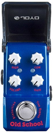 Gitarrenpedal Joyo JF313 Old School Ironman Series. Das Joyo JF313 Old School Ironman Series ist ein Mini-Gitarrendistortionpedal mit True Bypass, das durch einen klassischen Rocksound "alte Schule" gekennzeichnet ist. Es verfügt über die Regler High, Low, Volume, Gain und einen Schutzdeckel für die Regler, um versehentliche Änderungen der Einstellungen zu vermeiden.