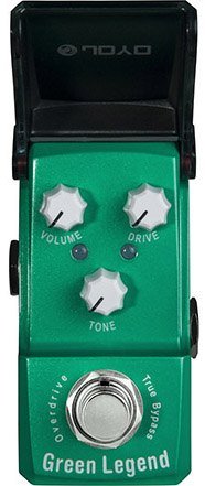Pedale für Gitarre Joyo JF319 Green Legend Ironman Series. Der Joyo JF319 Green Legend Ironman Series ist ein Overdrive-Pedal für Gitarre mit True Bypass im Mini-Format, das den klassischen Schaltkreis des Tube Screamer enthält. Es ist mit den Reglern Volume, Drive, Tone und einer Abdeckung zum Schutz der Regler ausgestattet, um versehentliche Änderungen der Einstellungen zu vermeiden.