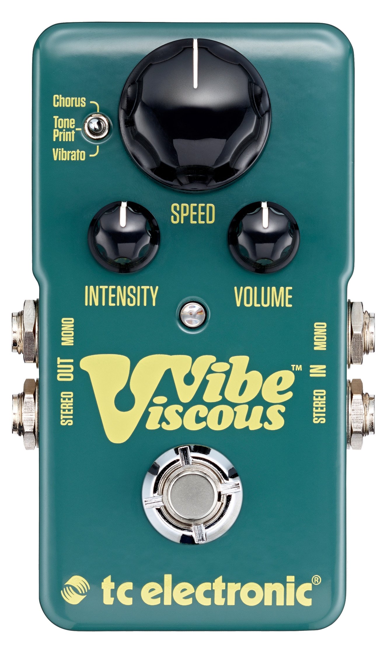 Pedale für Gitarre TC Electronic Viscous Vibe. Der TC Electronic Viscous Vibe ist ein true bypass Stereo-Uni-Vibe-Pedal für Gitarre, das eine absolut präzise digitale Nachbildung des originalen analogen Shin-Ei Uni-Vibe bietet. Es verfügt über die Regler Speed, Intensity, Volume und einen Mini-Schalter mit 3 Positionen zur Auswahl der Modi Chorus/TonePrint/Vibrato. Dank der TonePrint-Technologie ist es möglich, kostenlos neue Konfigurationen, die von TC-Programmierern und weltbekannten Musikern entworfen wurden, innerhalb des Pedals herunterzuladen oder neue über die kostenlose TonePrint Editor-App zu erstellen.