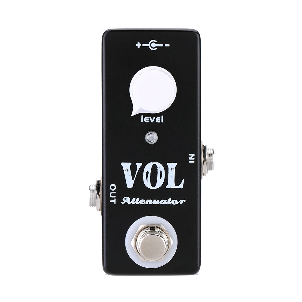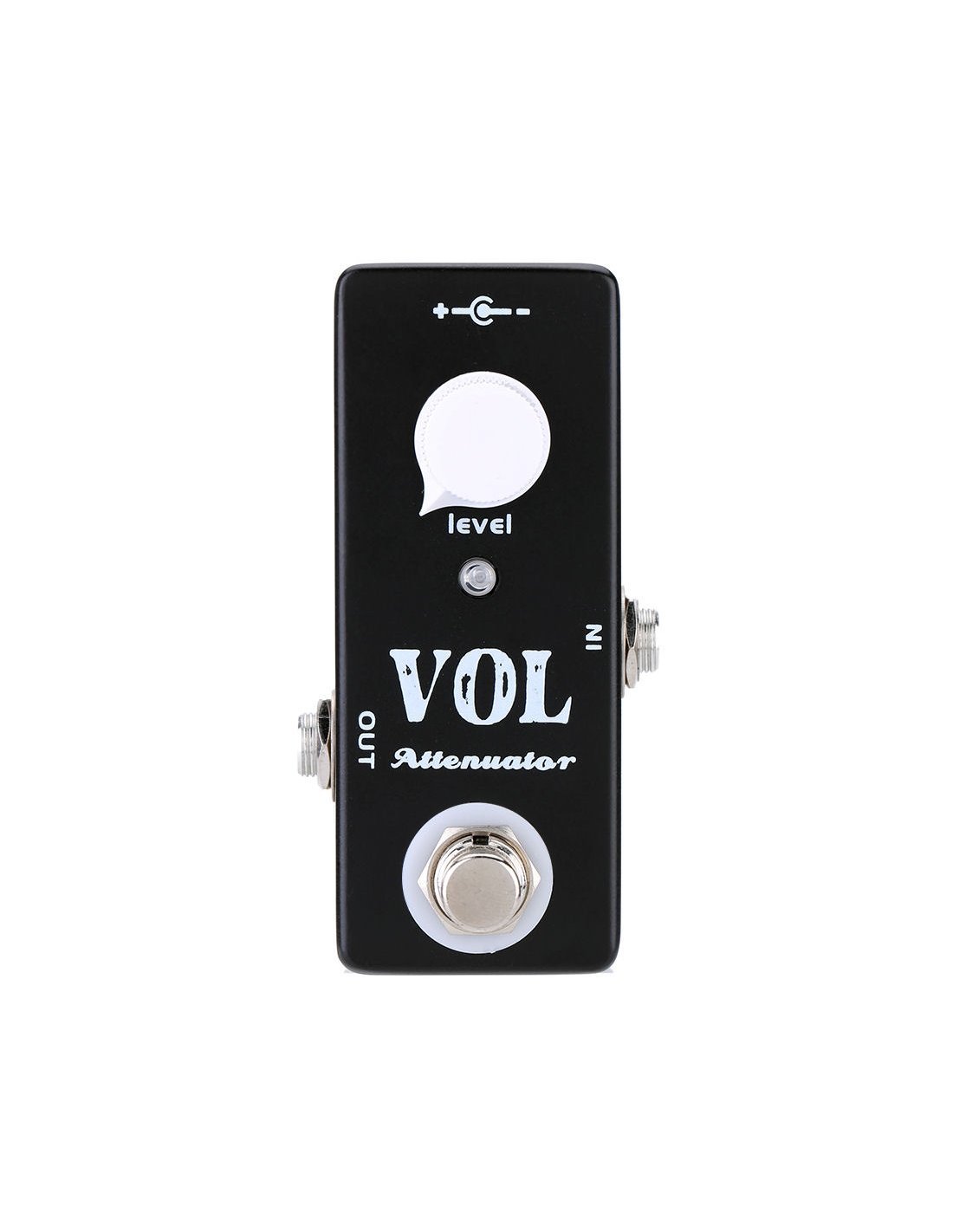 Pedale für Gitarre Mosky Vol Attenuator. Der Mosky Vol Attenuator ist ein passiver Attenuator, der es ermöglicht, sofort auf ein anderes voreingestelltes Volumen zu wechseln. Basierend auf dem EHX Signal PAD, verfügt er über die Level-Regelung.