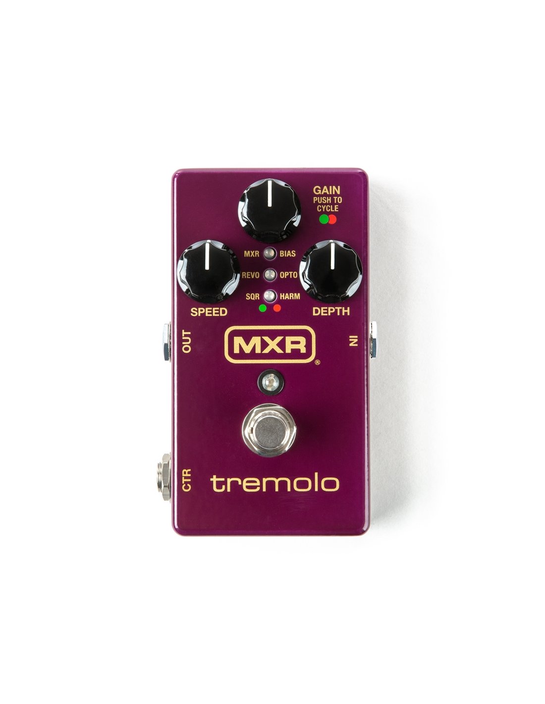 Mit den sechs verfügbaren Wellenformen werden im M305 die klassischen Tremolo-Klänge, von denen sich das M305 inspirieren ließ, und die neuen Klänge, die vom MXR-Designteam entwickelt wurden, optimal dargestellt. Der MXR-Stil rekreiert den organischen Klang und den Puls des beliebten Stereo-Tremolos MXR M159. Der Bias-Stil greift die reiche und kraftvolle Kompression der Tremolo-Effekte von Röhrenverstärkern der frühen 60er Jahre auf. Revo, eine originale Innovation, verwandelt die Wellenform des optischen Tremolos, indem sie umgekehrt wird, für eine übertriebene klangliche Ausdehnung. Der Opto-Stil emuliert das pulsierende Tremolo, das von Fotowiderständen in vielen beliebten Verstärkern erzeugt wird. Inspiriert von einem ikonischen Outboard-Effekt erzeugt die Einstellung SQR ein bewegtes und stark ausgeprägtes Tremolo. Schließlich rekreiert der Harmony-Stil das trippy Tremolo, ähnlich einem Phaser, das von einigen seltenen Vintage-Verstärkern produziert wird.